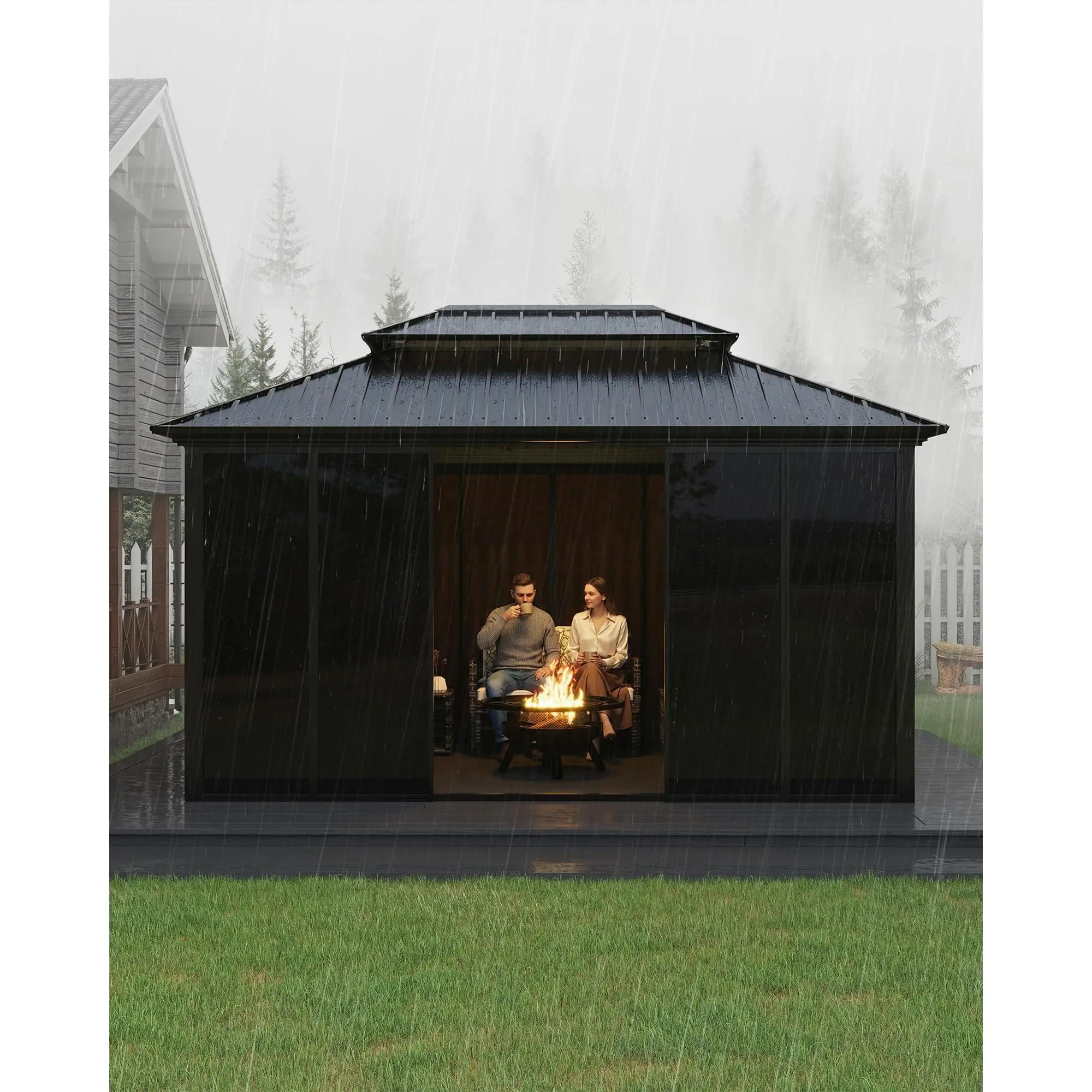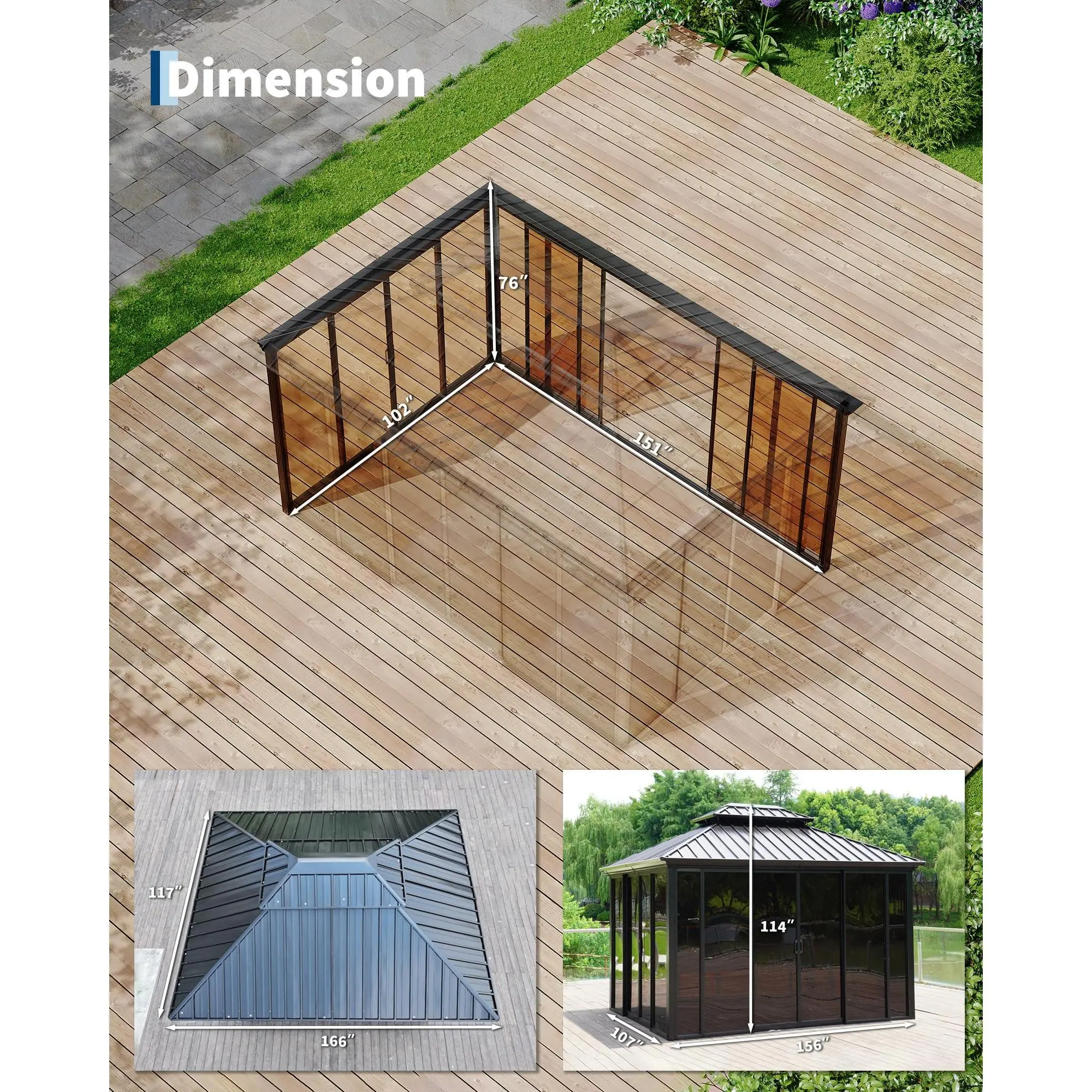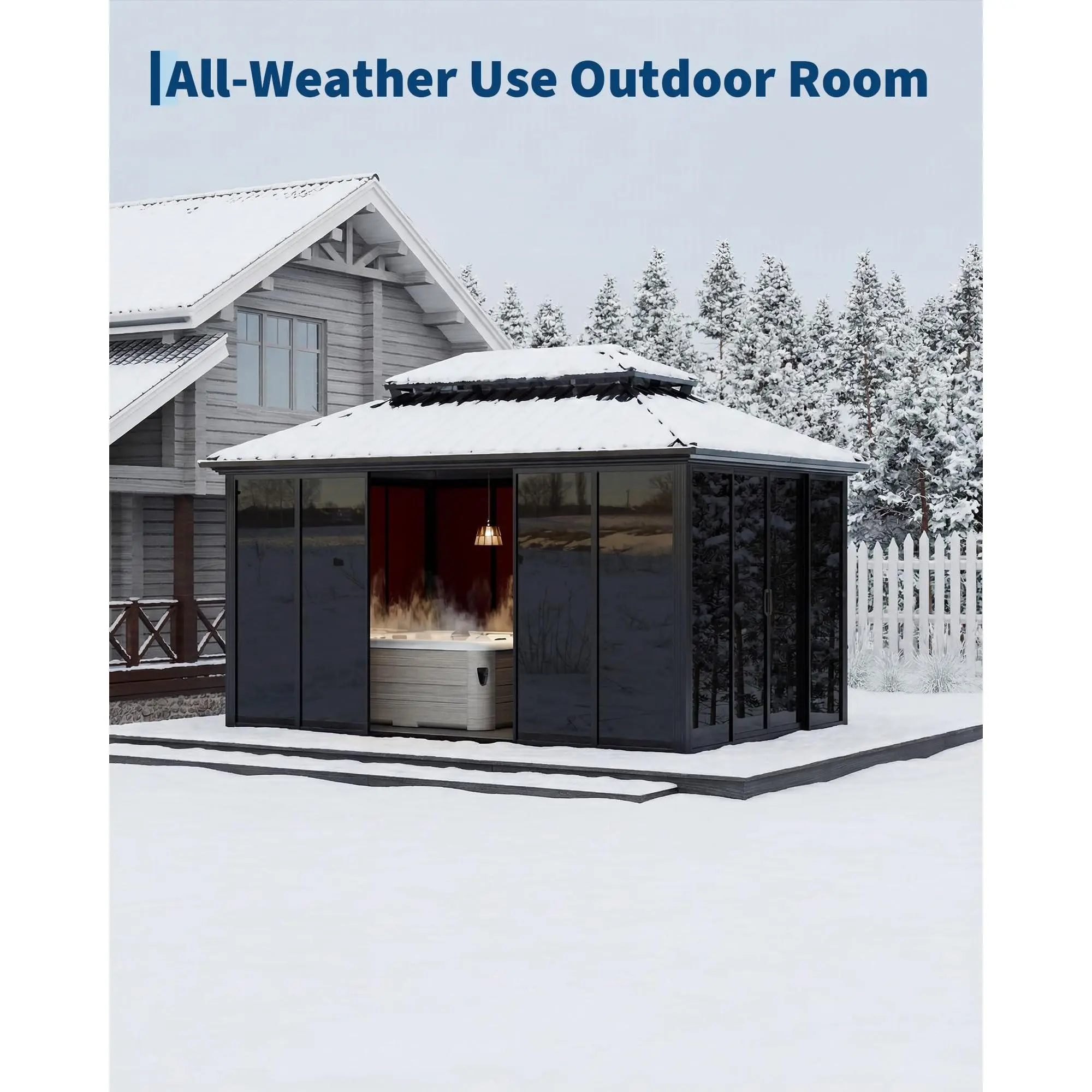 This **10x14 ft Hardtop Gazebo Sunroom** is the ultimate upgrade. **Aluminum frame**, **polycarbonate sliding doors**, **double roof** – it’s an **all‑season outdoor room** that works as an **enclosed patio solarium, hot tub enclosure, or cozy hangout**. Rain, snow, or blazing sun – you’re covered. 🙌
