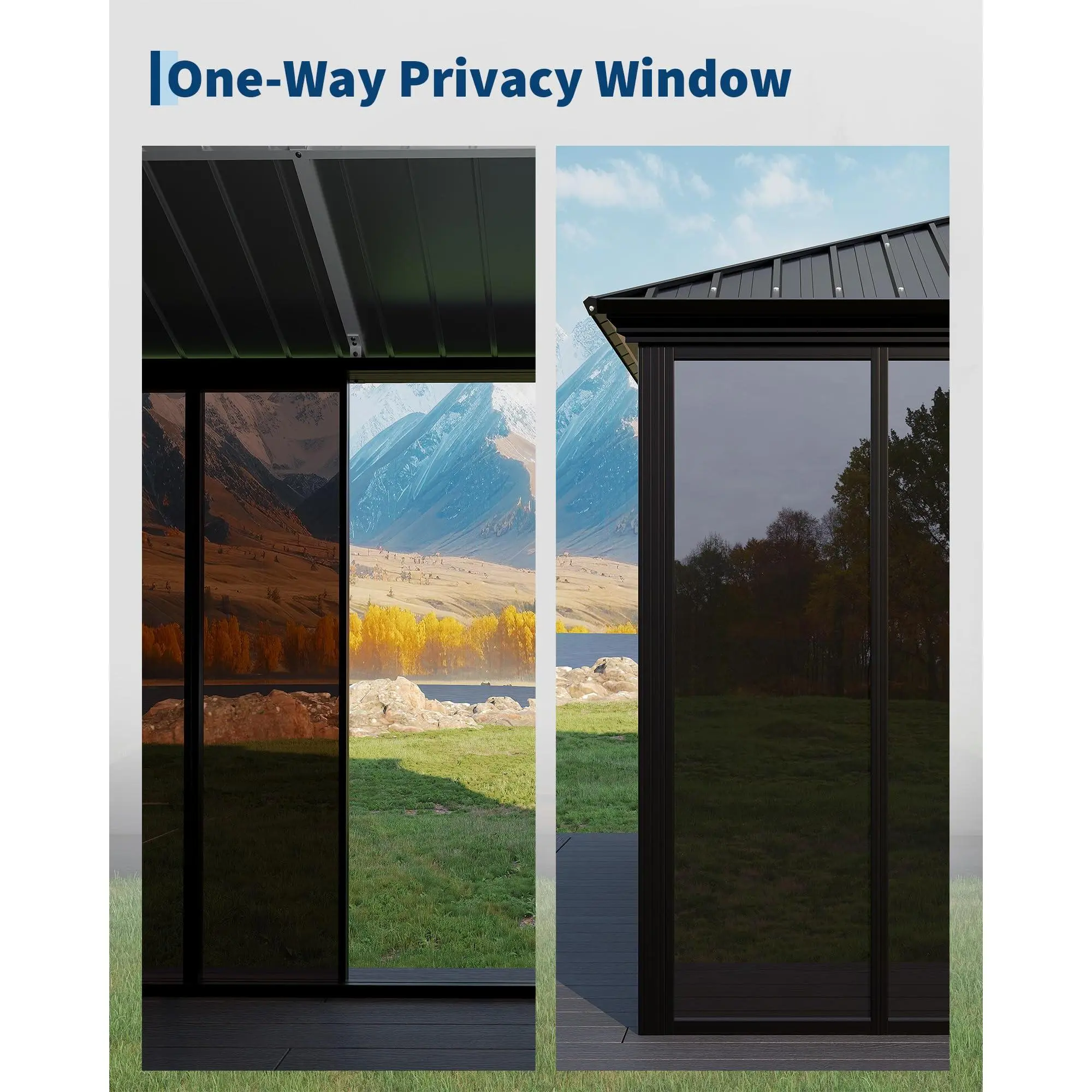 👀 **Dark‑tinted polycarbonate sliding doors** – floor‑to‑ceiling views, one‑way privacy during the day. Let natural light pour in without letting neighbors peek. **Double‑layer roof design** keeps air flowing – no heat buildup, just fresh, comfy vibes.