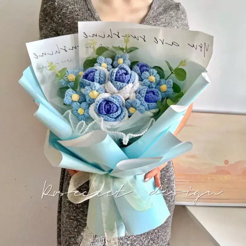 ·12 Blue Puff Flowers with Gift Bag (30 × 20 × 10 cm)