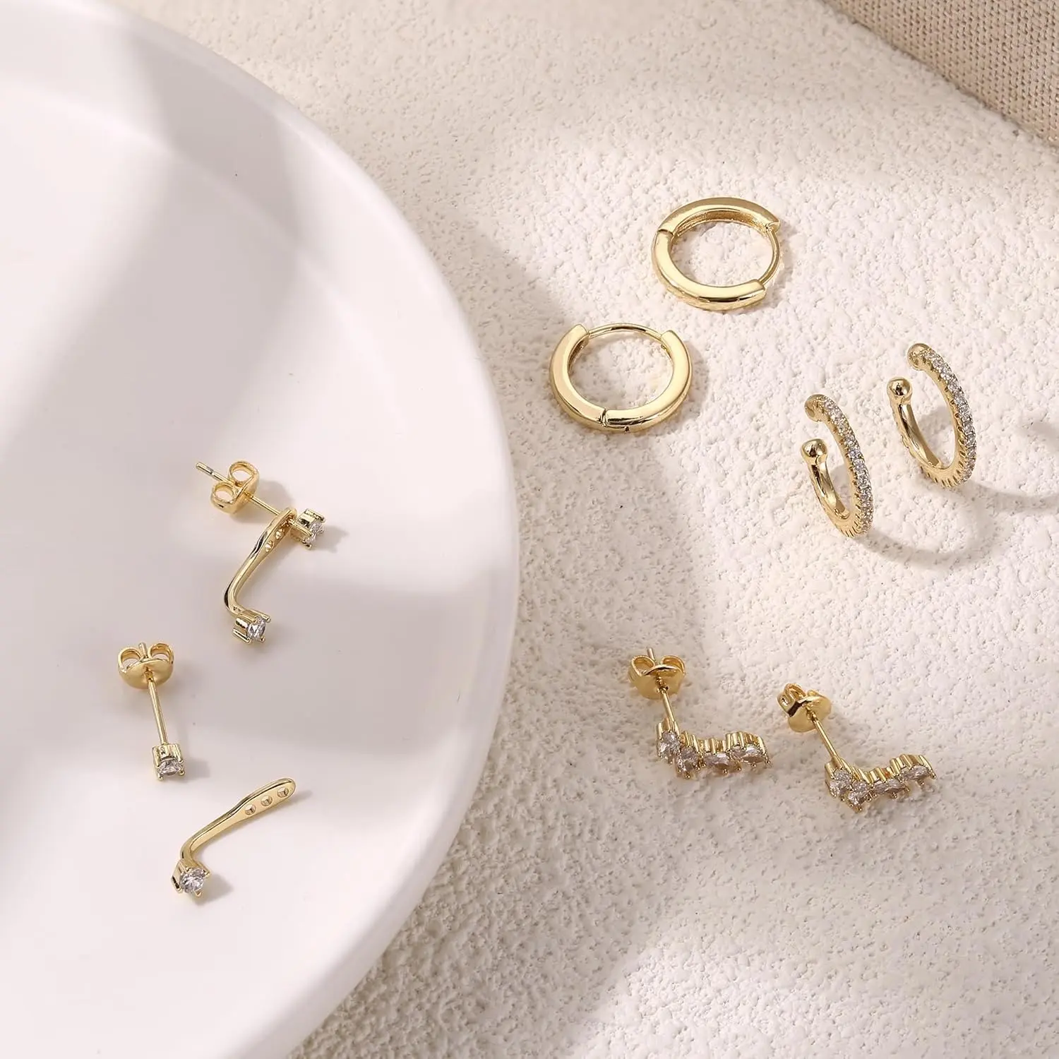 ·Earring Sets for Multiple Piercing: Embrace the versatility and elegance with these lightweight gold studs, perfect for all-day wear. Our curated collection includes a mix of delightful earrings and studs, each uniquely versatile and ideal for complementing your daily outfits.