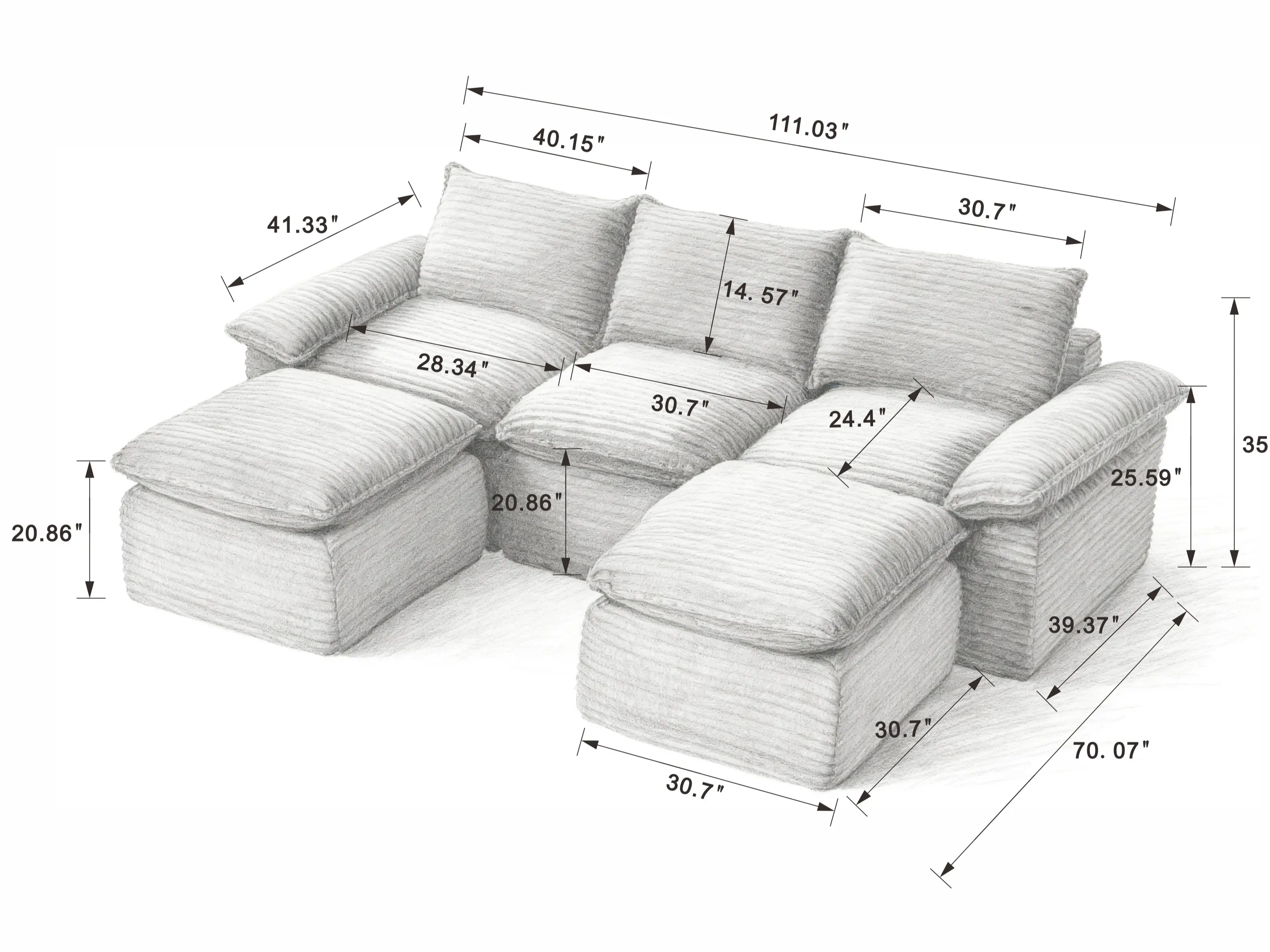 corduroy beige 2 pkgs (3seater+1 ottoman)