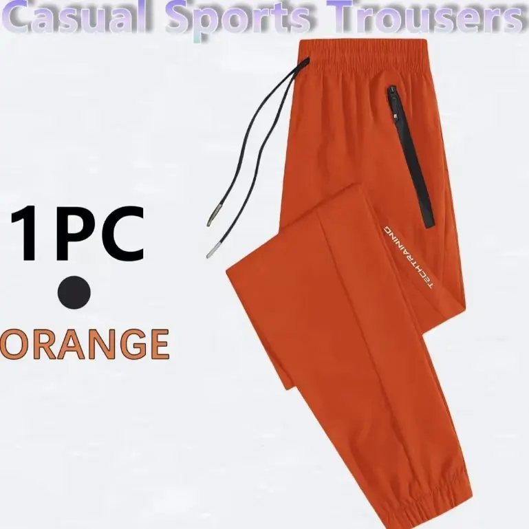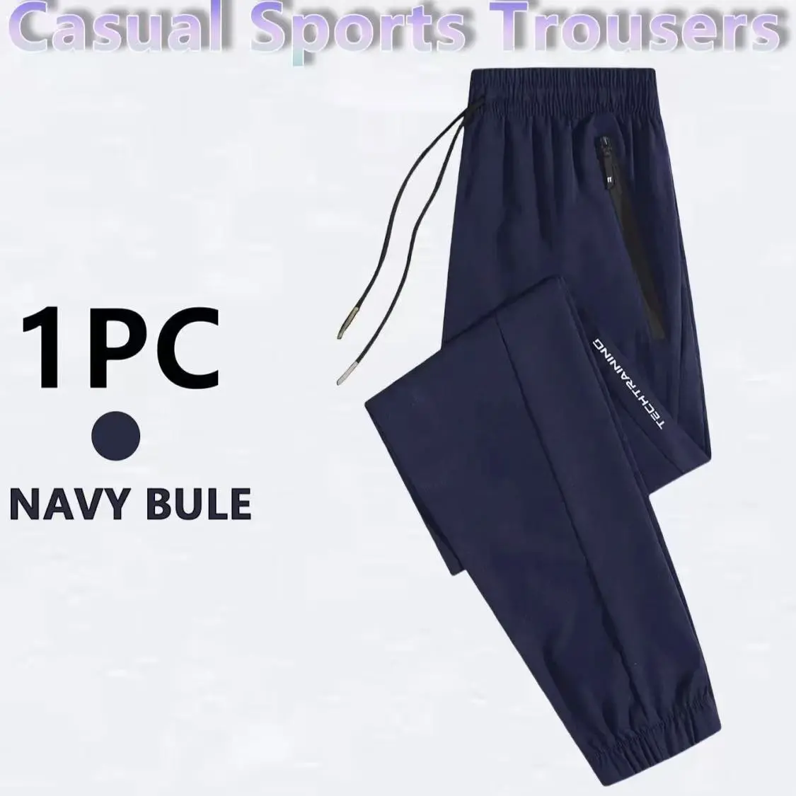 Men’s lightweight ice silk casual athletic pants with a drawstring waist, skin-friendly and comfortable, zippered pockets, suitable for warm weather and everyday wear.