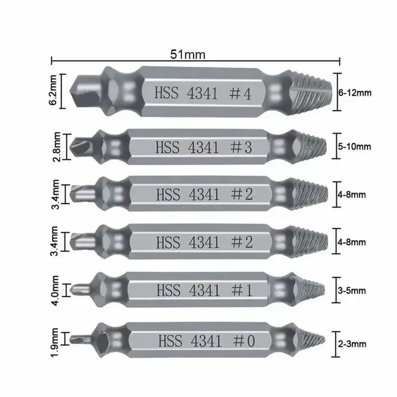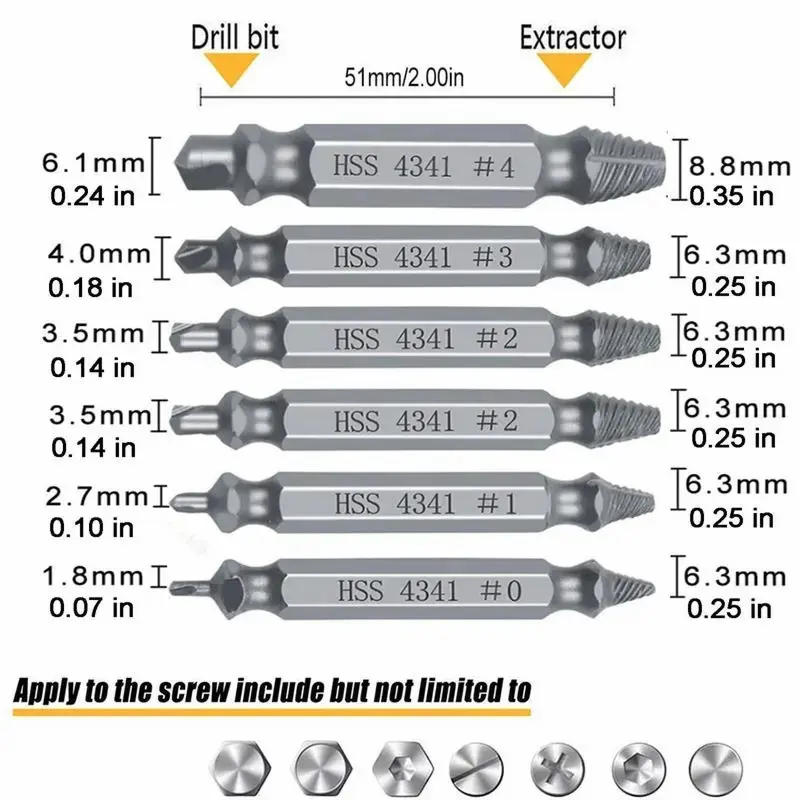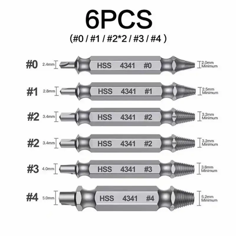 Stripped Broken Screw Remover,6 Counts Set Easy Out Bolt Extractor, Damaged Screw Extractor Set,Double Head Extraction Design Extractor Head,Household Repair Tools, Power Tool Accessories, Screwdriver Bit Clip