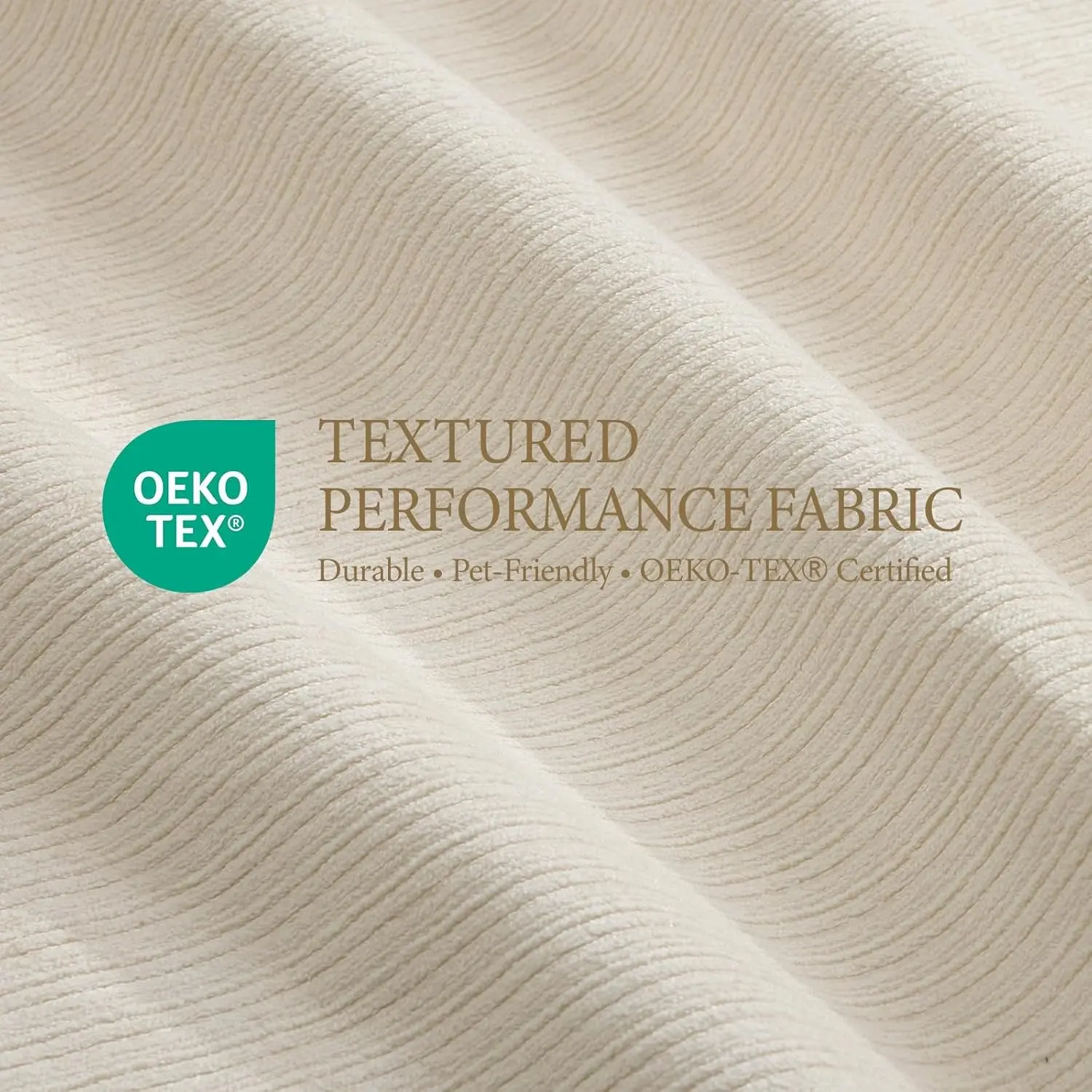 ·Premium Ribbed Chenille Upholstery:This bed is wrapped in ultra-soft ribbed chenille fabric that adds depth and dimension, creating a refined, high-end upholstered look that instantly elevates your bedroom style. Tightly woven, high-density fabric resists pilling, wrinkles, and daily wear. OEKO-TEX certified, breathable, and skin-friendly — designed for everyday comfort in modern homes. The textured fabric may appear soft white under cool indoor lighting and cream tone under sunlight or warm light, adding depth and a dynamic look to your space.