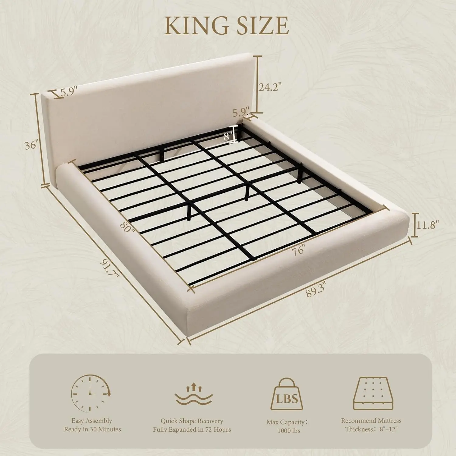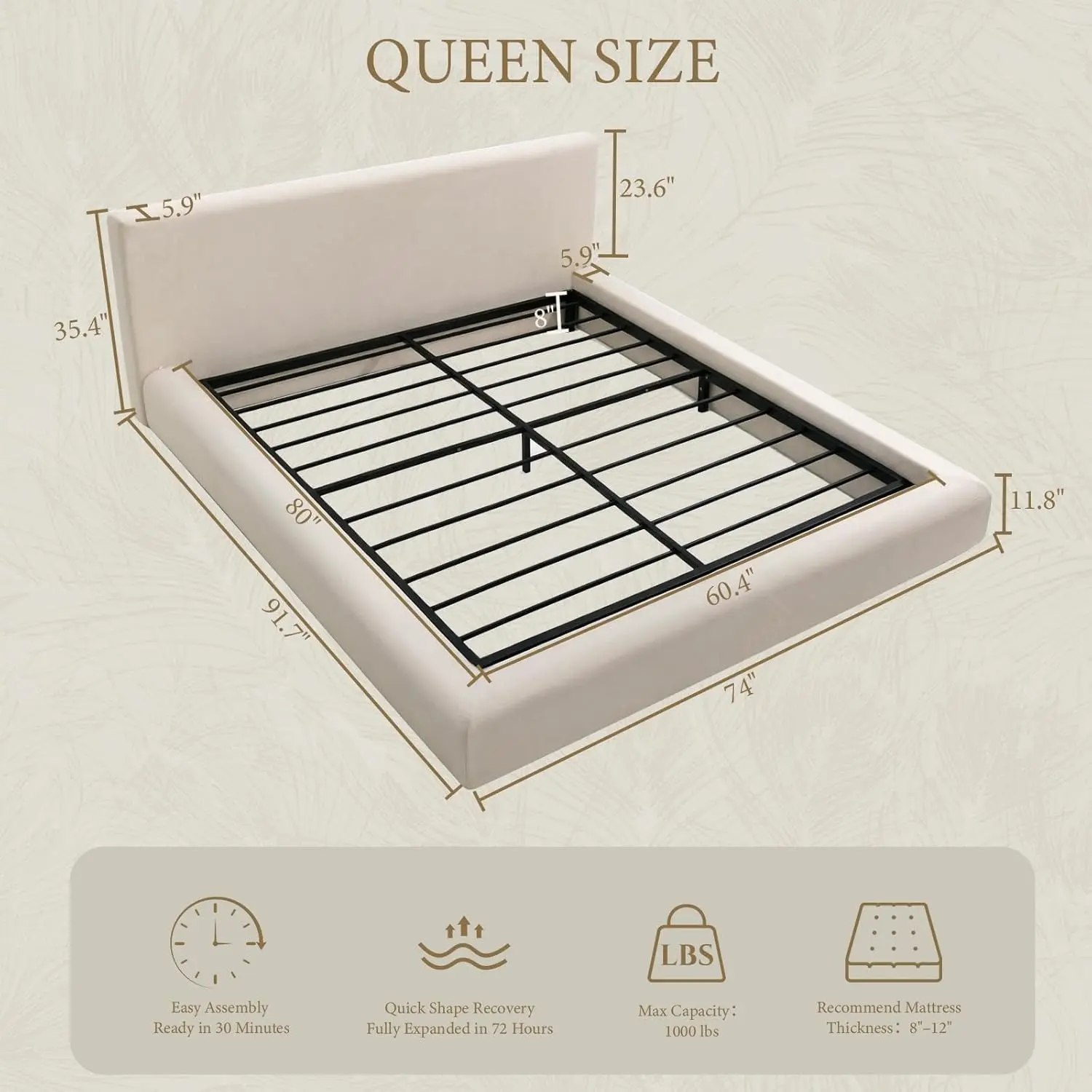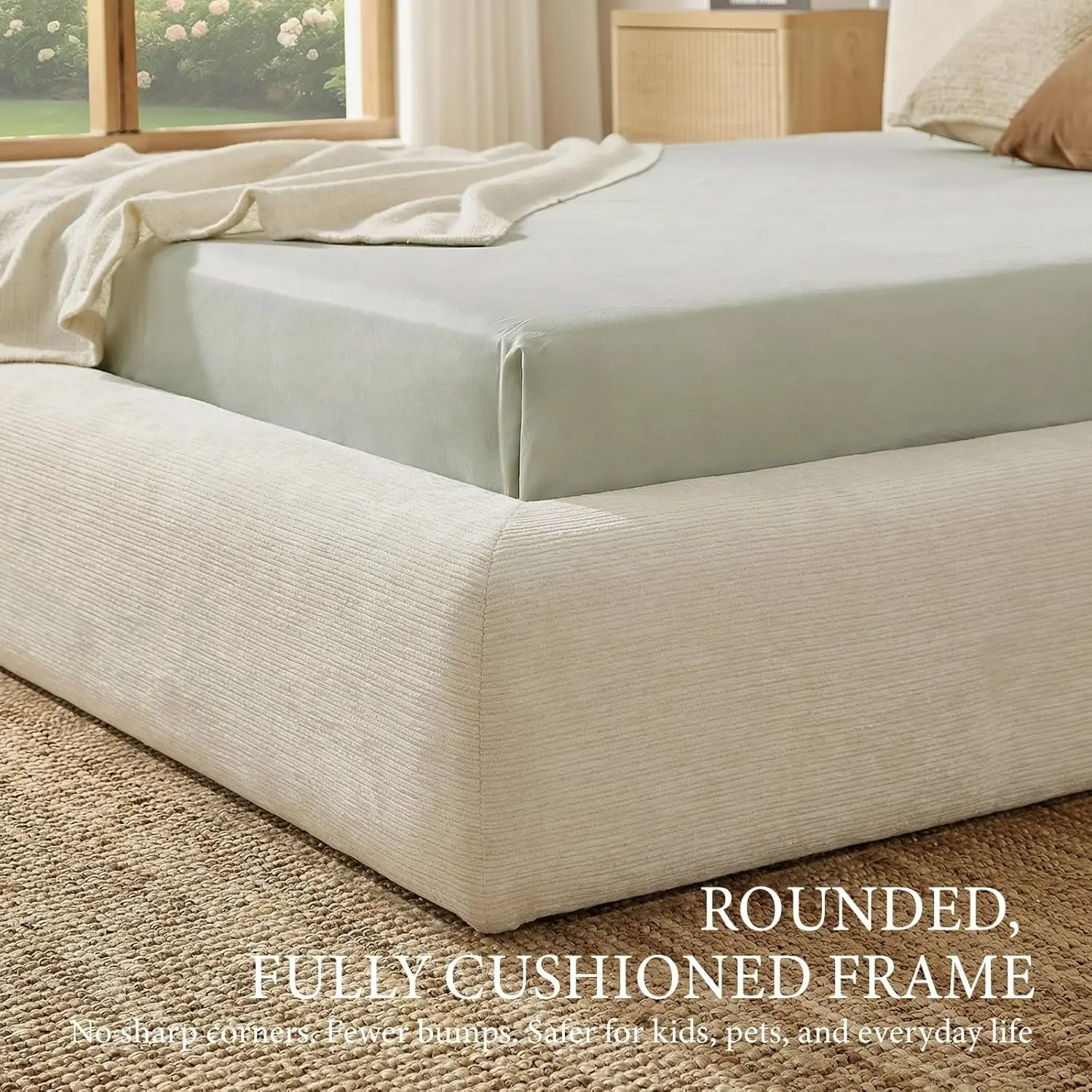 ·5.9" Extra-Thick Padded Removable Headboard:Designed as a floor bed frame with headboard, this fully upholstered design features deep 5.9-inch padding on the headboard, side rails and footboard. The rounded silhouette creates a supportive, cloud-like feel — making it a true cloud bed frame for reading, lounging or streaming in bed. The removable headboard cover makes cleaning and maintenance simple.
