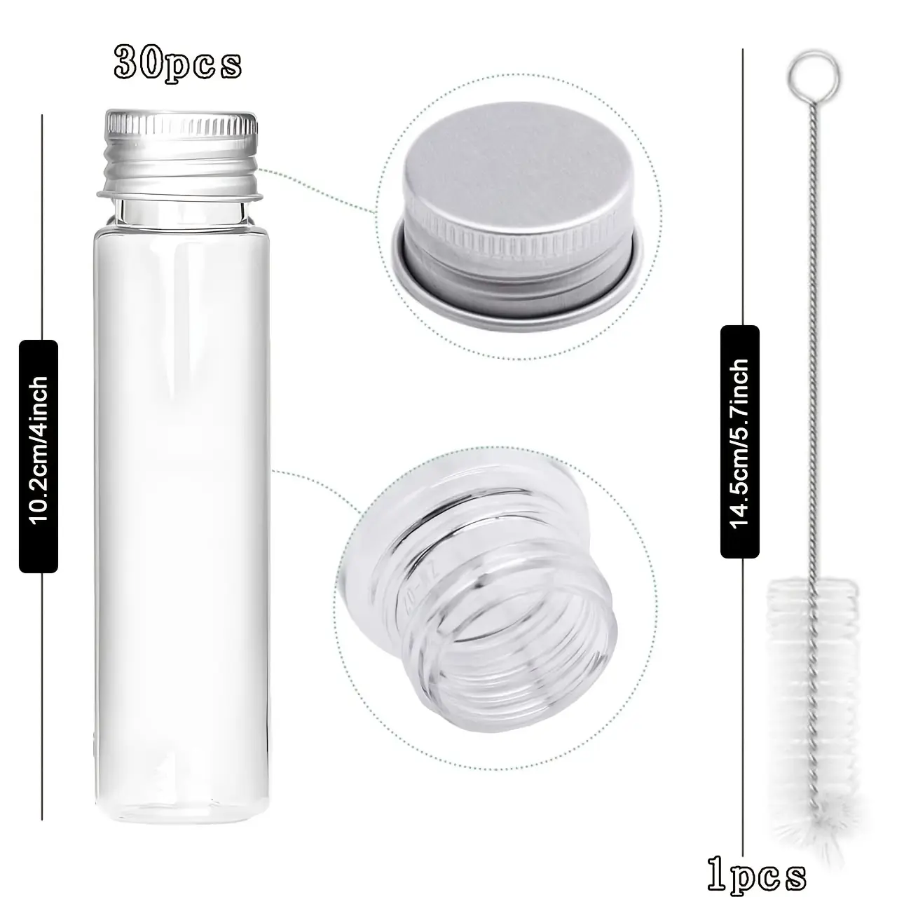 Candy Bottle Caps Plastic Test Tubes 50 Ml With Caps 30 Pack 30x104mm Clear Flat-Bottomed Test Tubes With Screw Lids Small Tubes With Caps Candy Tubes Bath Salt Containers Cool Stuff For Room Can used as a Candy jar at Home or for Travel