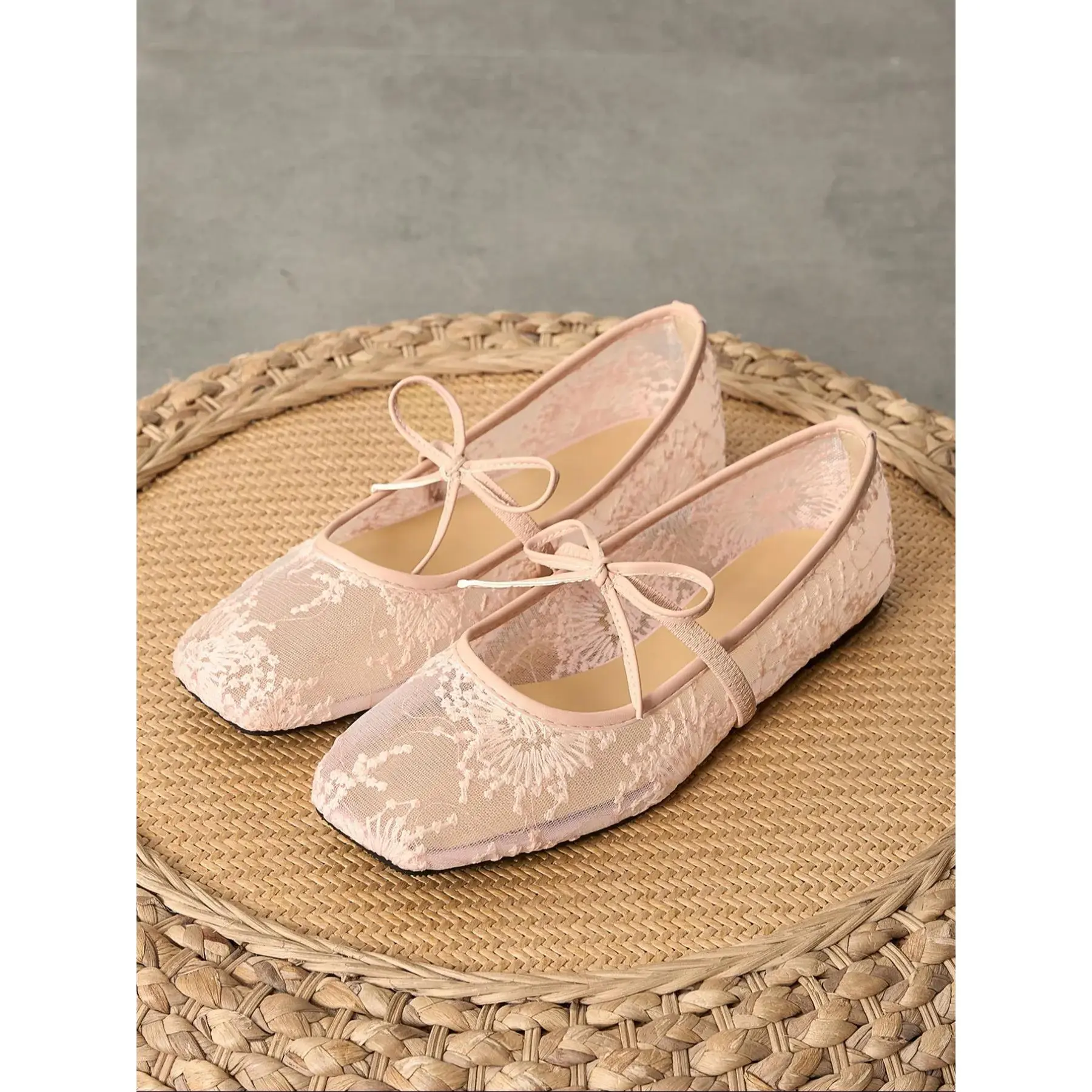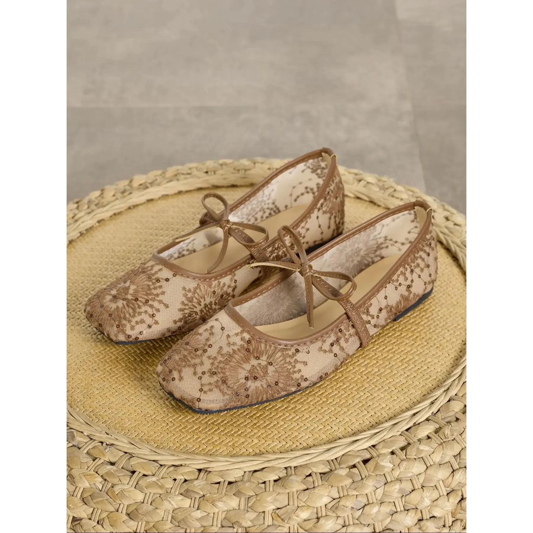 Women's Embroidered Mesh Netted Ballet Flats, Elegant Square-Toe Flat Shoes for Parties and Daily Wear, Lightweight Breathable Comfortable Footwear for Women & Girls, Ballerina Flats Shoes