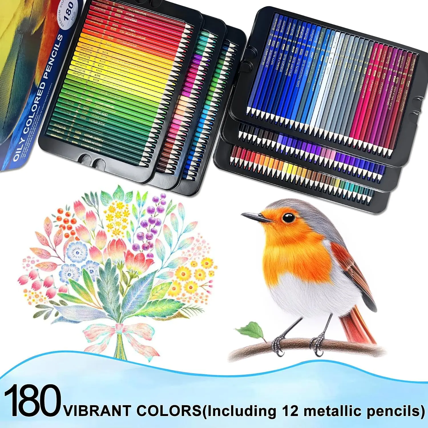 180 Color Artist Colored Pencils Set, Soft Core, Professional Numbered Art Drawing Pencils for Sketching Shading Blending Crafting, Gift Tin Box