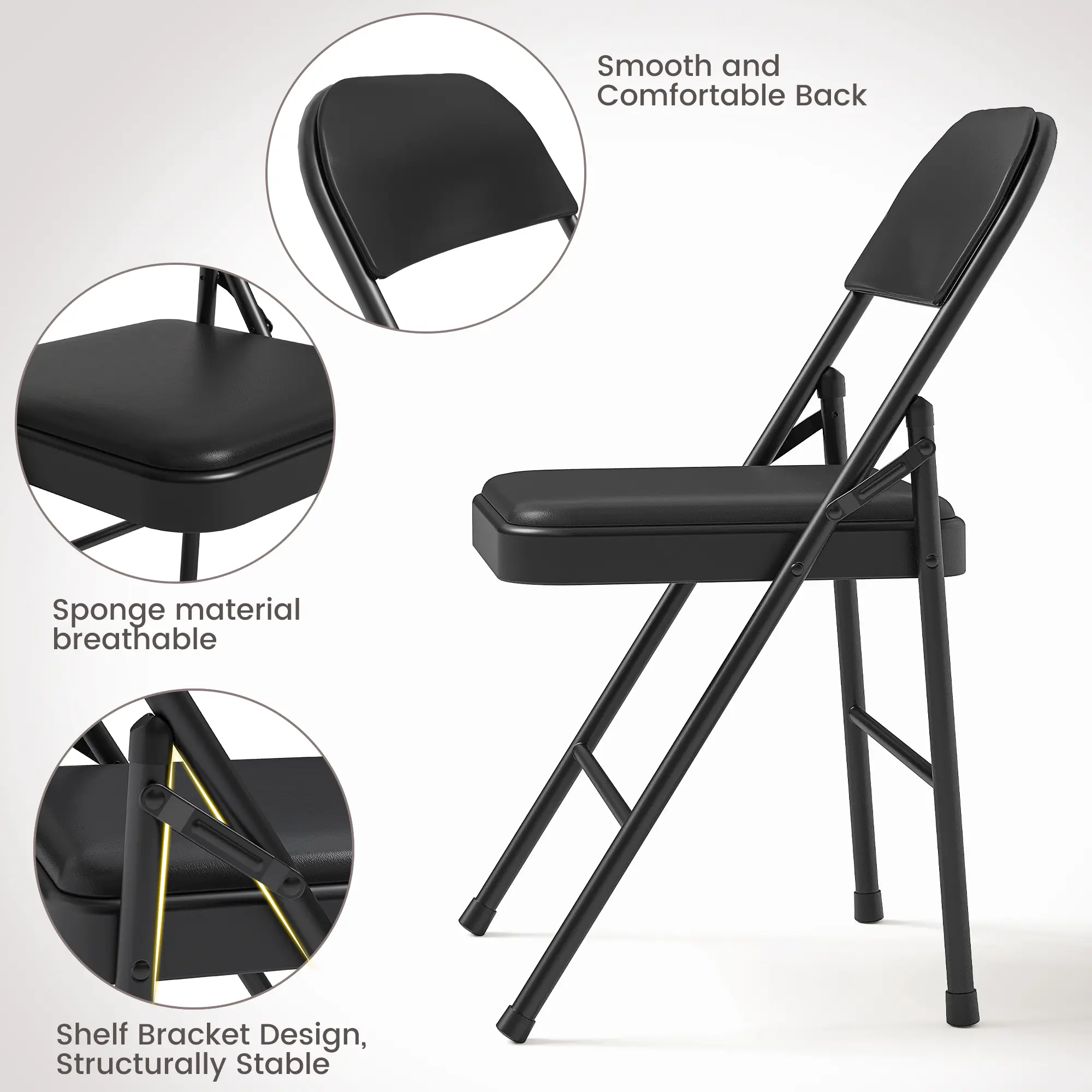 ·Sturdy and Durable: Constructed with a robust iron frame and high-quality PU upholstery, these folding chairs support up to 350 lbs per seat, ensuring reliable stability for daily use or larger gatherings.