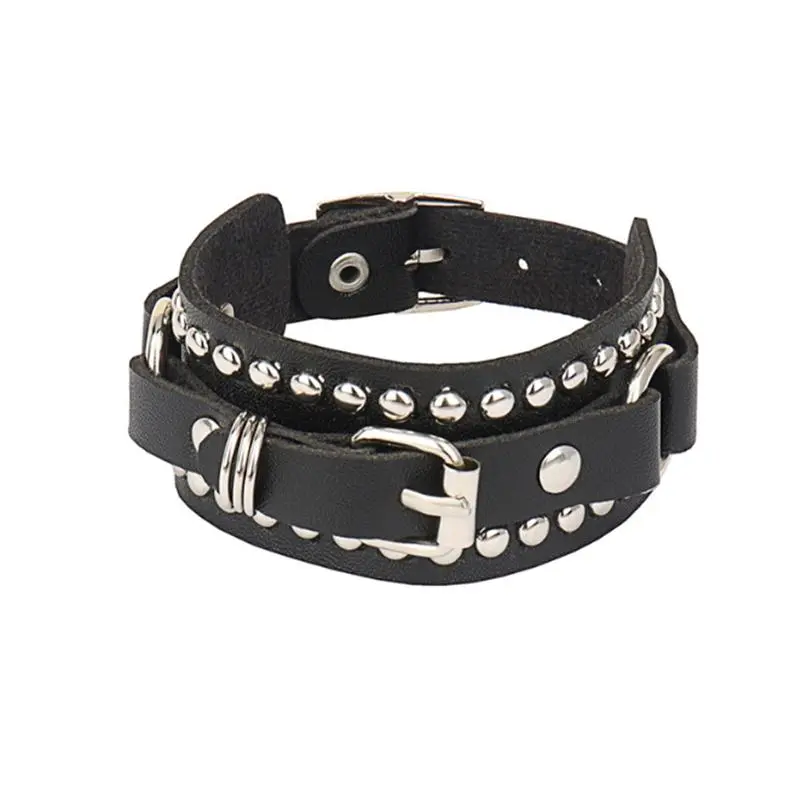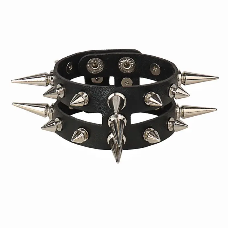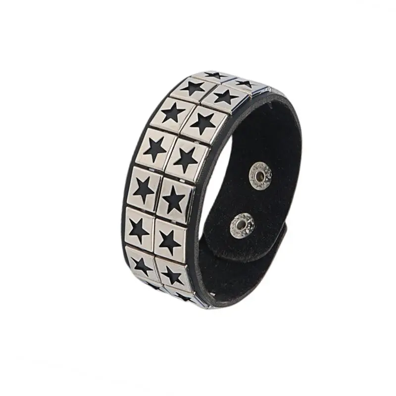 1Pc Hip Hop Rock Spikes Rivets Stud PU Leather Bracelet Men Vintage Punk Heart Pentagram Party Wristband Women браслет Jewelry