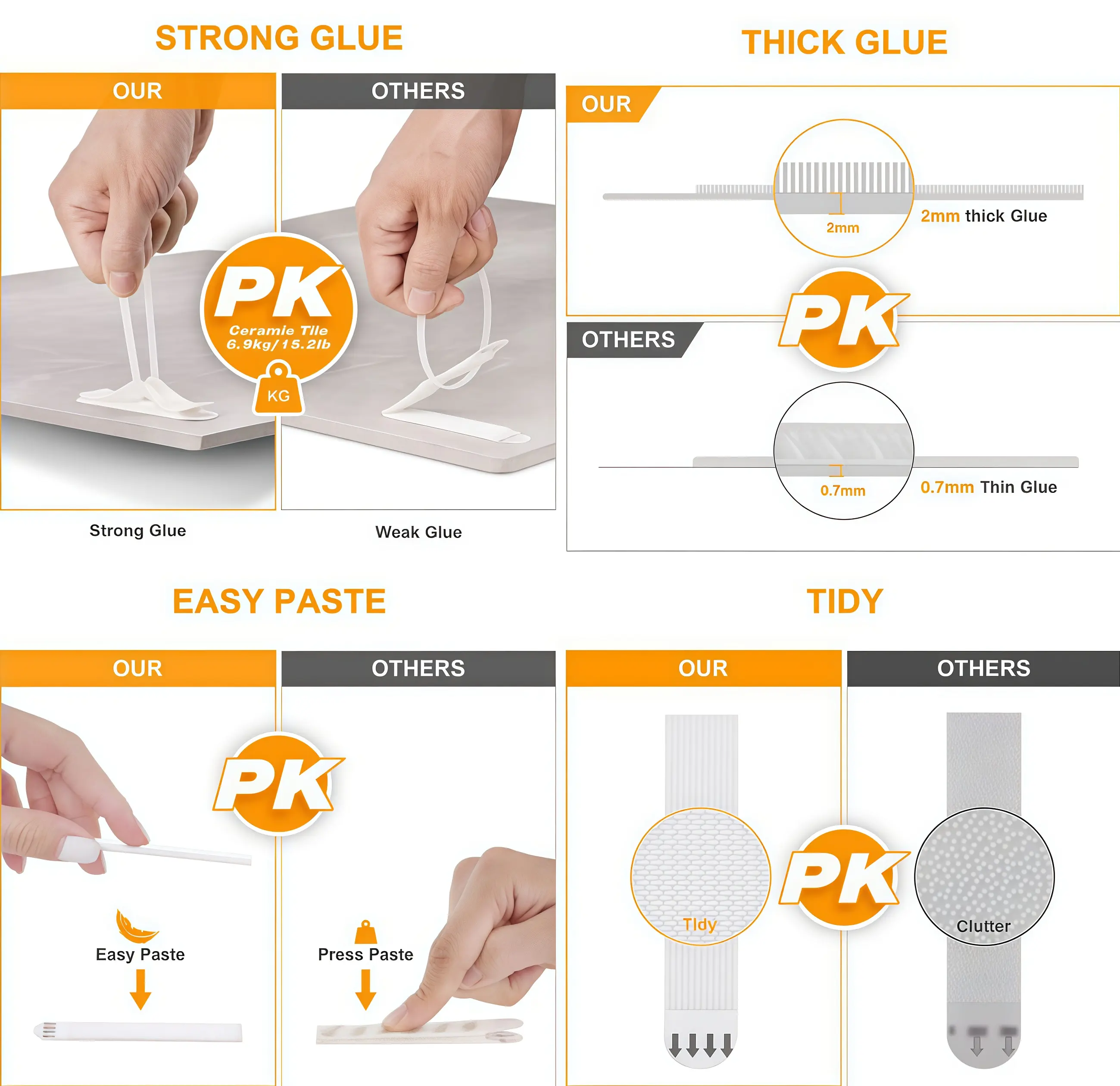 ·【HOW TO USE】First clean up the wall that needs to be adhered, then tear off one side of the protective film, stick it on the article, and then tear off the other side to stick the object to be adhered to the wall.