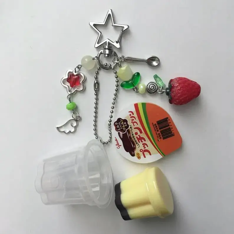 ·Adorable Design: Pink and yellow pudding charm for a sweet, kawaii vibe.