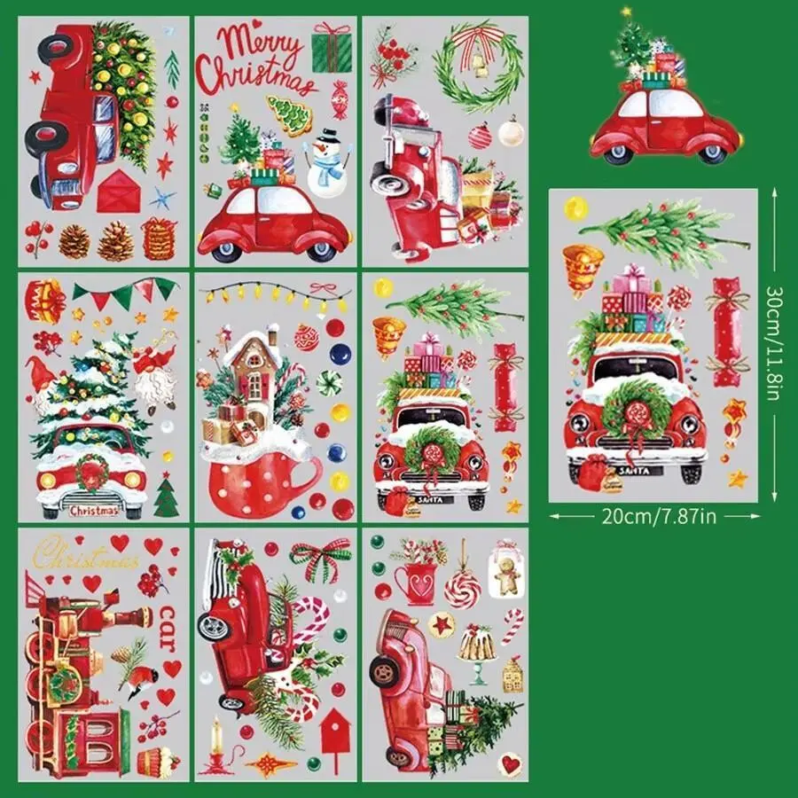 1 Set Santa Claus Elk Shop Hotel Christmas Window Double Sided Glass Sticker, Christmas, Halloween, Thanksgiving Day Gift gift