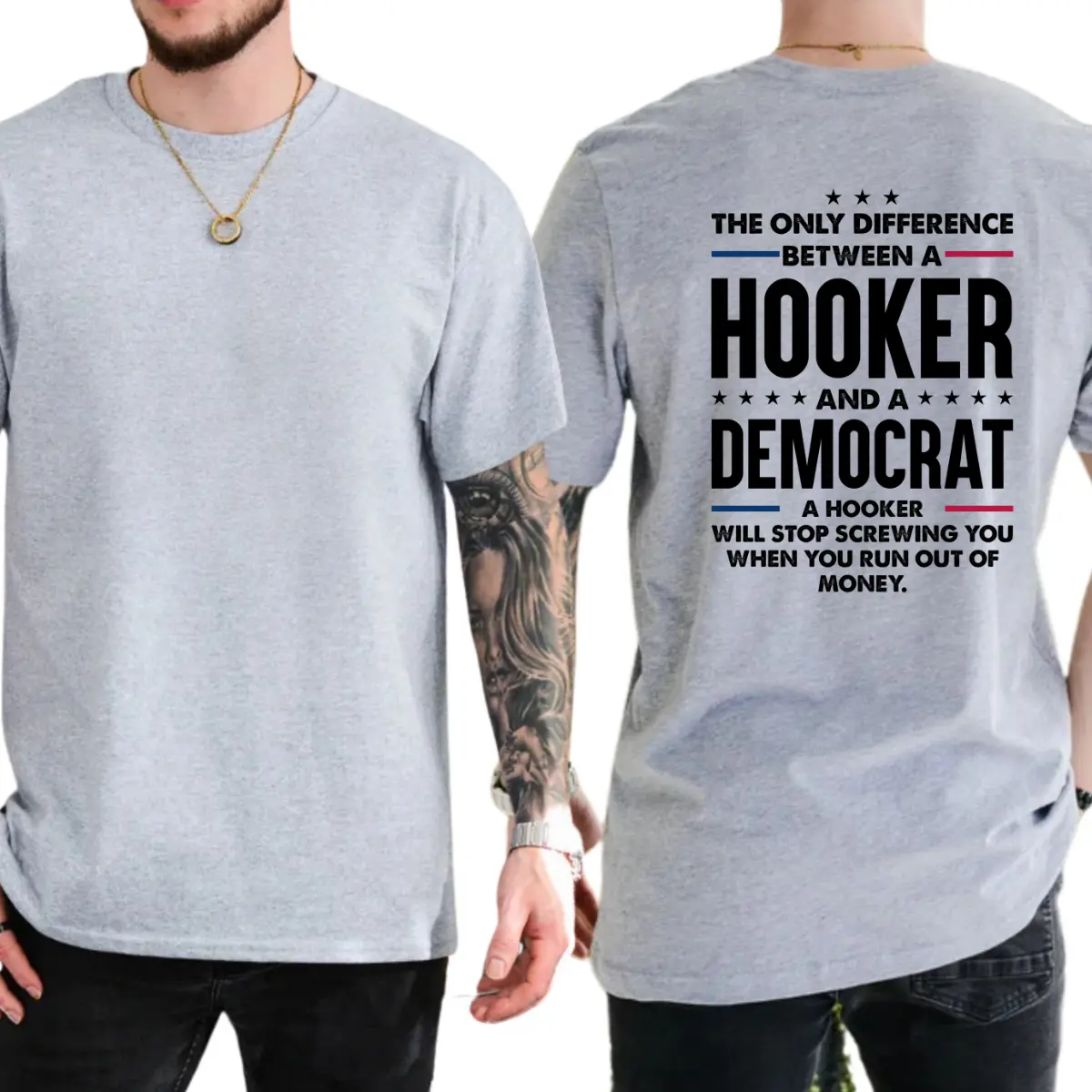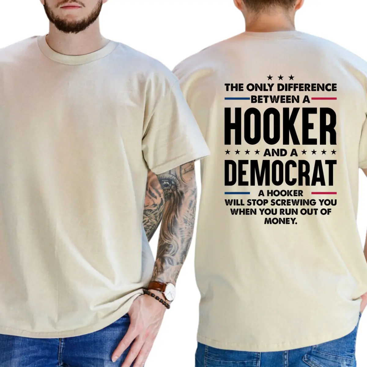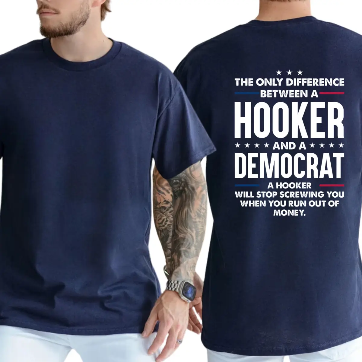 The Only Difference Between A Hooker And A Democrat T-shirt, Unisex Graphic Tees, Funny Shirts, Casual Menswear, Comfy Cotton world tshirts book merch