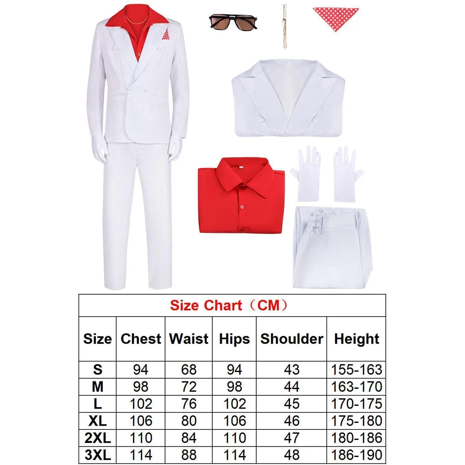 1983 Movie Scarface Al Pacino Cosplay Men White Suit Red Shirt Costume Accessories Outfits Halloween Roleplay Men Carnival Party