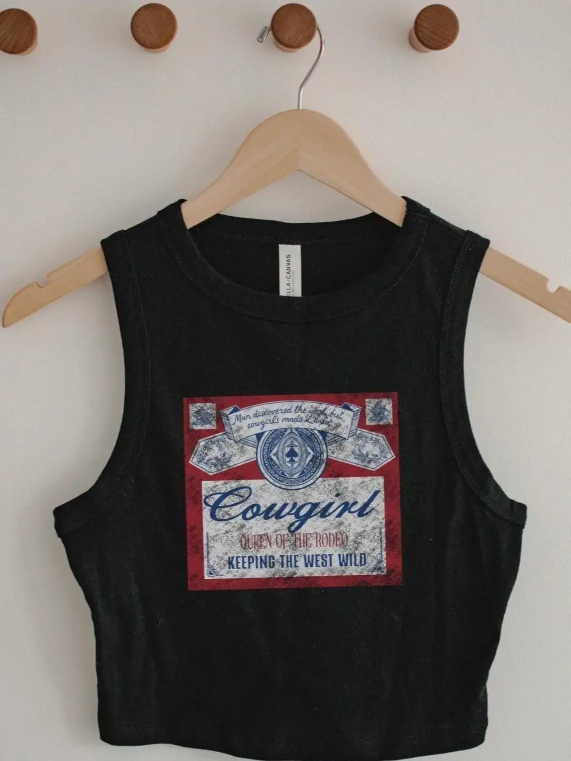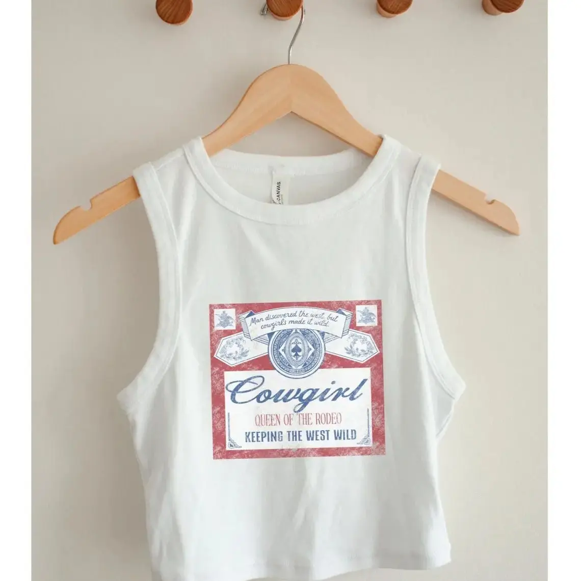 Vintage Beer Tank Top Cropped Women Rodeo Shirt Trendy Vintage Cowboy Festival Shirt Crop Top Western Cowgirl Tee Grunge Boho Tank Concert