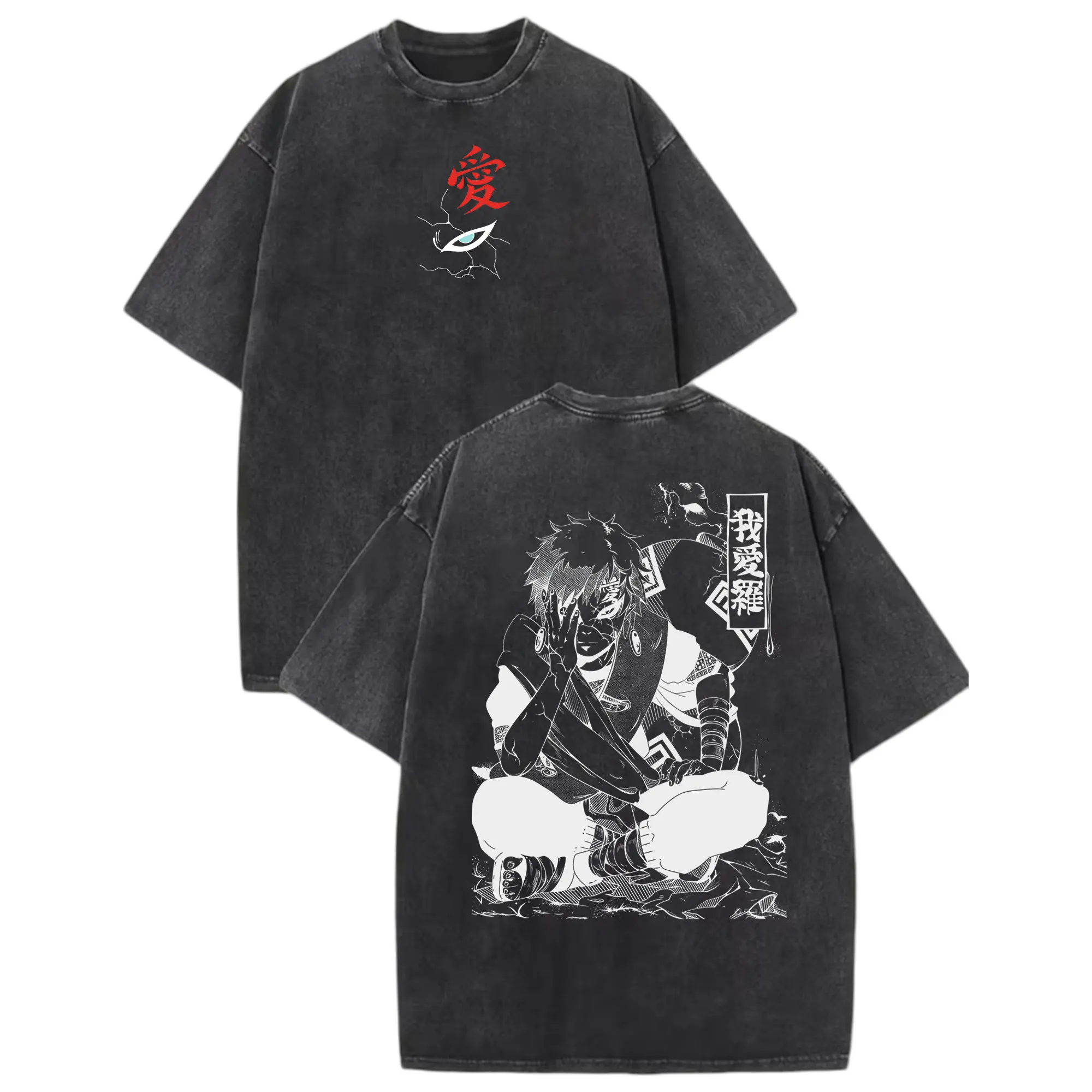 Gaara - Naruto Anime Double Printed Vintage Washed Tee Unisex Oversize Anime Manga Washed Heavyweight Cotton T-shirt, Gift For Anime Fan