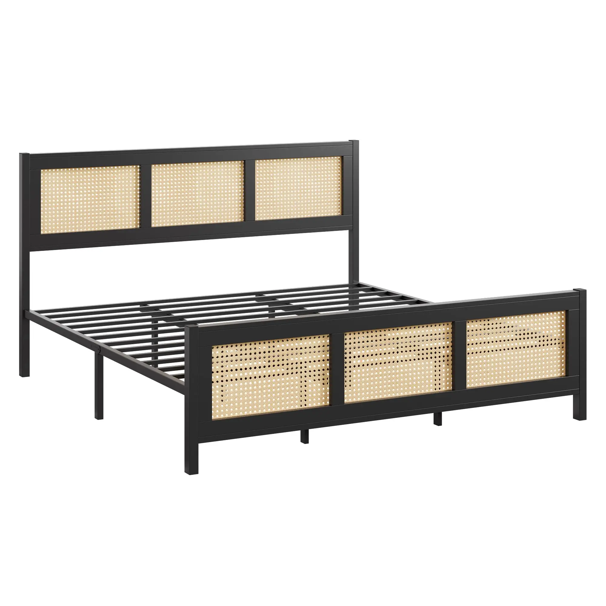 · Bohemian Rattan Bed Frame: Features a woven rattan headboard and footboard with sturdy metal slats, blending natural texture with modern style for a warm, inviting bedroom look.