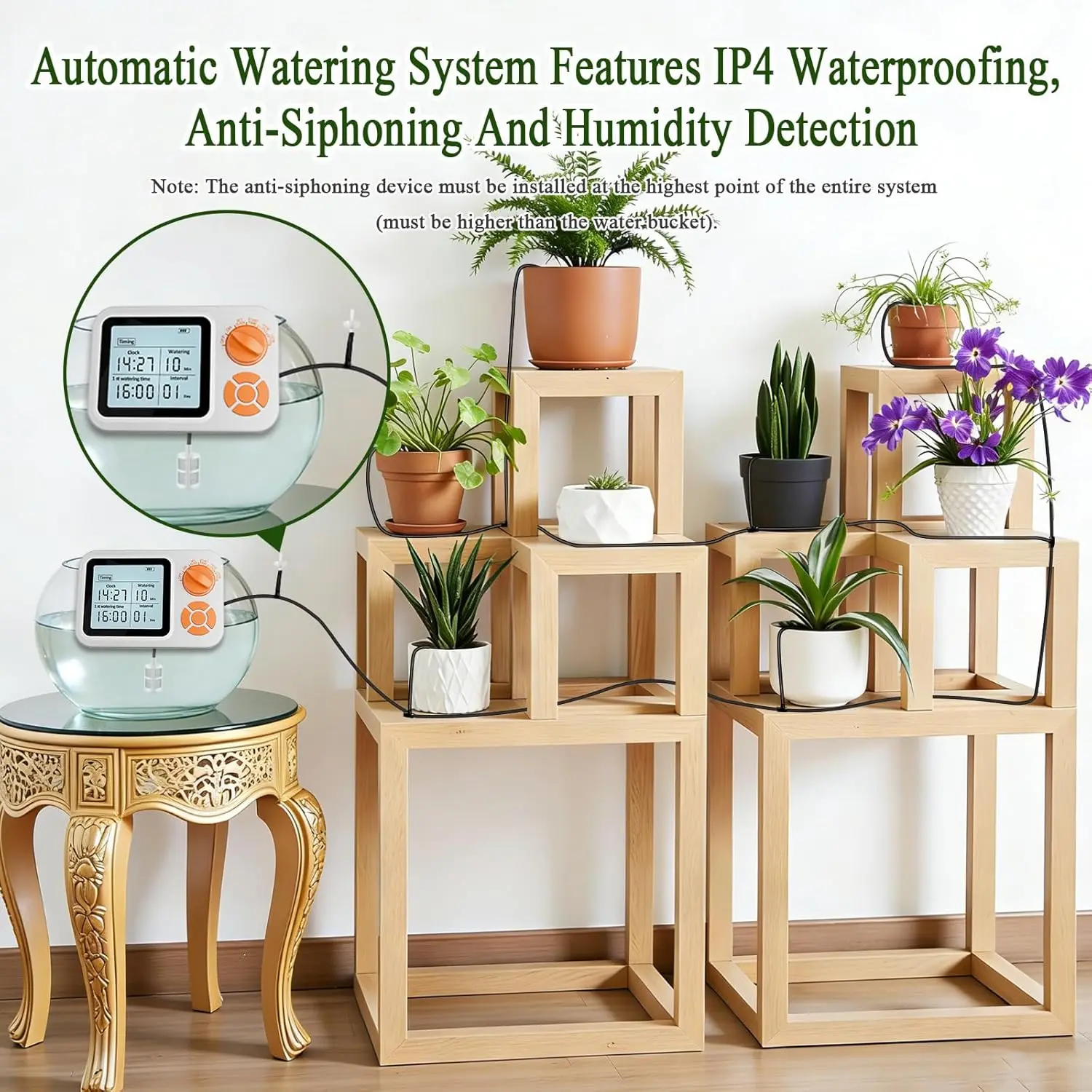 ·Easy Installation: Automatic plant watering system includes watering system x1, 33' silicone tube x1, Type-C cable x1, T joints x15, dropper x15, filter x1, anti-siphon component x1, humidity probe x1, hook x1, user manual x1; DIY your own drip irrigation system and create a custom watering plan based on your plants’ specific needs