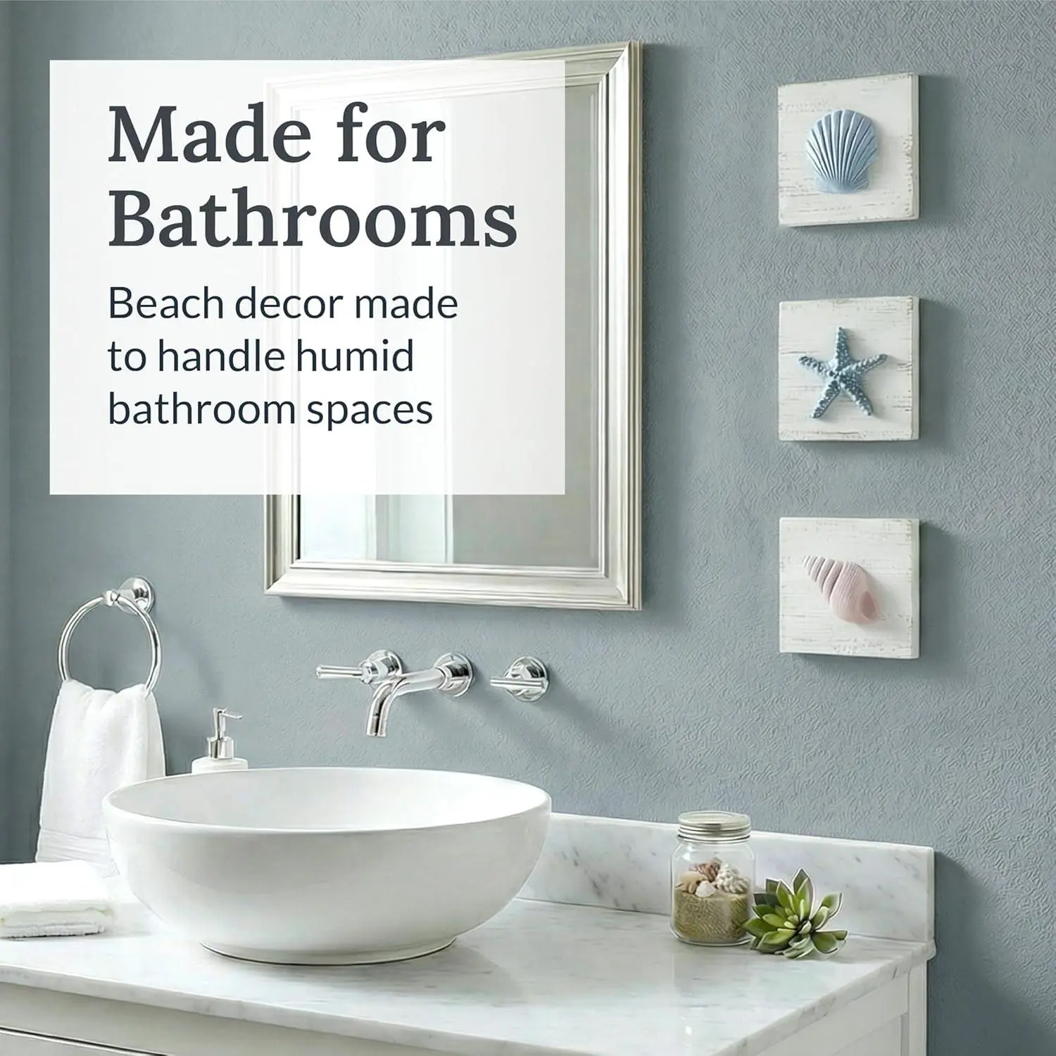 Tide and Tales 3D Beach Wall Art - Seashell with Starfish for Coastal Bathroom Decor, Ocean Inspired Decor for Bathroom, Coastal Bedroom, Living Room or Beach House, Set of 3 (6"x 6")