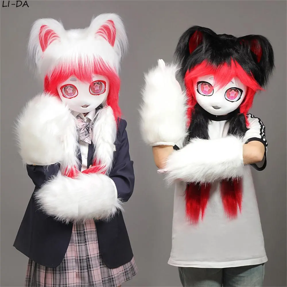Fursuit Kigurumi Head Mask Furry Cosplay Costume Head Base Comiket Furries Rubbit Doll Cat Doll Kig Costume Lolita Cat Ears Head