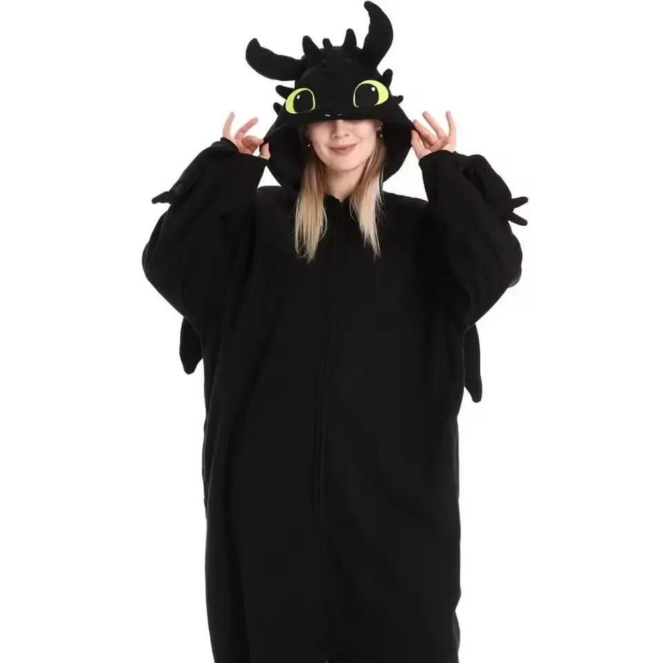 Black Toothless Dragon Onesie Pajamas Adult Kids Kigurumi Unicorn Jumpsuit Animal Pijamas Train Halloween Cosplay Winter Slipper
