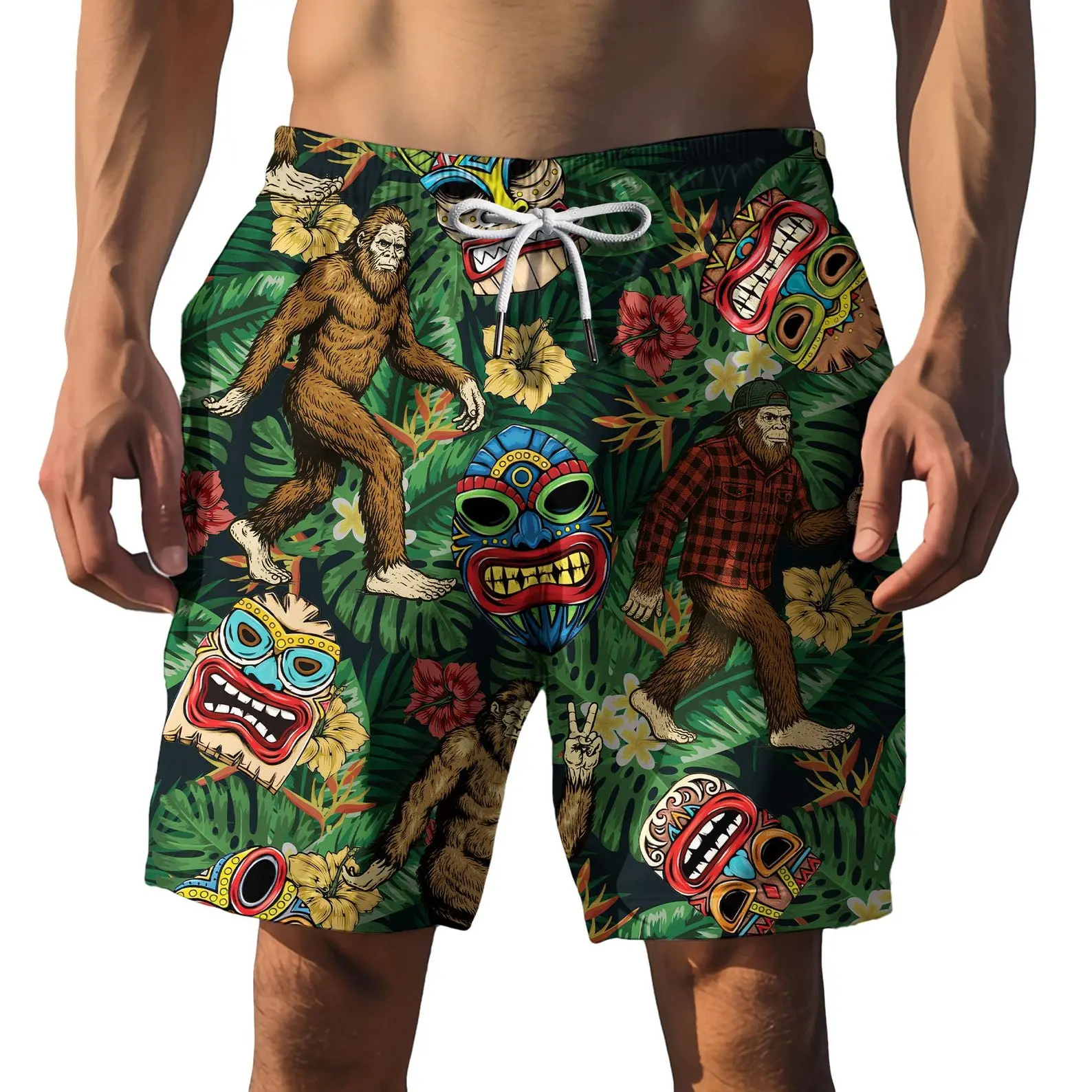 5. Tropical Bigfoot Tiki Hawaiian Shorts, Galaxy Sasquatch Summer Beach Shorts