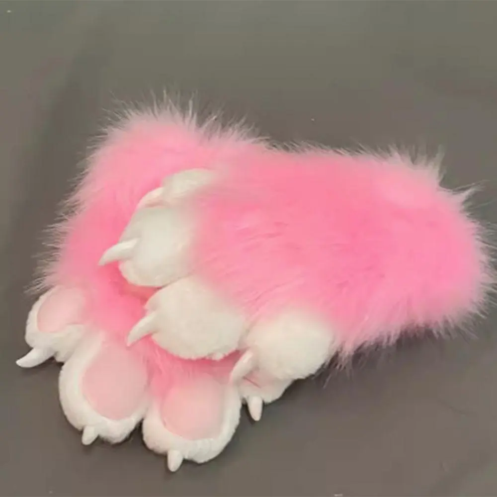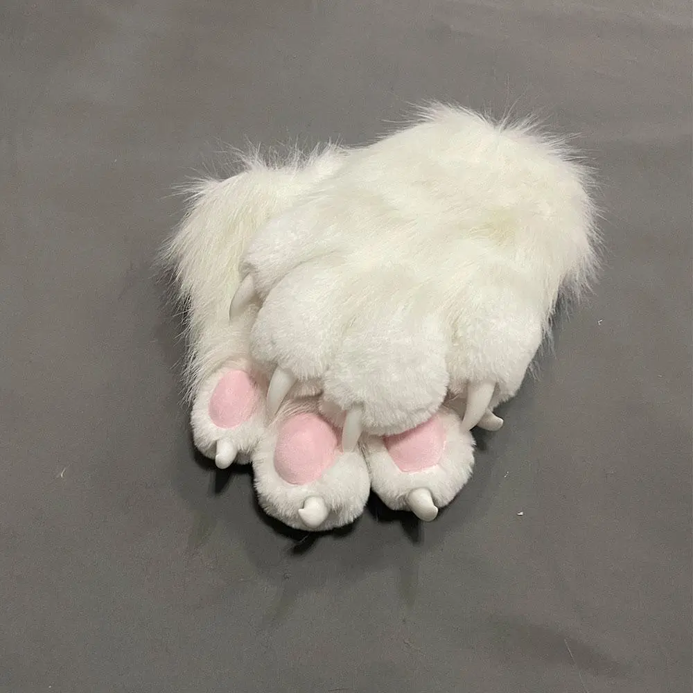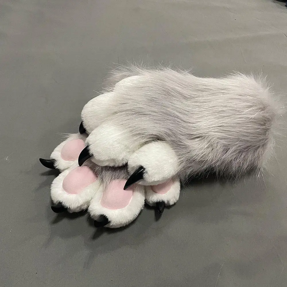 Faux Fur Plush Furry Cat Claw Gloves Fursuit Animal Fox Paws Mittens Halloween Cosplay Costume Accessories for Adult