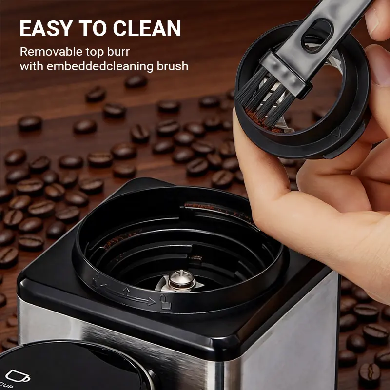 This electric coffee bean grinder is compact, fitting easily into any kitchen. The 200W motor provides the power needed for a smooth grind. The air blower enhances the brewing process. Perfect for those who value efficiency and precision in their coffee-making routine.
