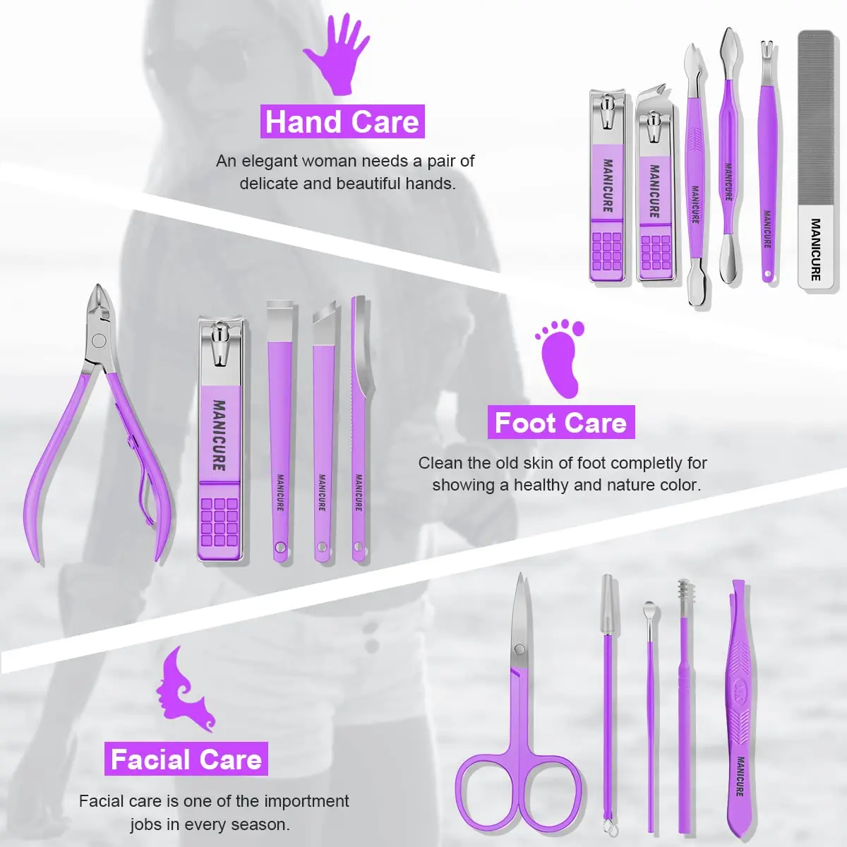 Elevate your nail care routine with this 16-piece professional manicure and pedicure set, crafted from premium stainless steel for durability and precision. Designed for both men and women, this grooming kit includes nail clippers, cuticle tools, scissors, tweezers, and more—perfect for tackling thick nails and achieving salon-quality results at home. The set comes in a luxurious travel-friendly leather case, making it an ideal gift for loved ones or a stylish companion for personal care on the go. Whether for everyday grooming or special occasions, this kit ensures your nails always look their best.