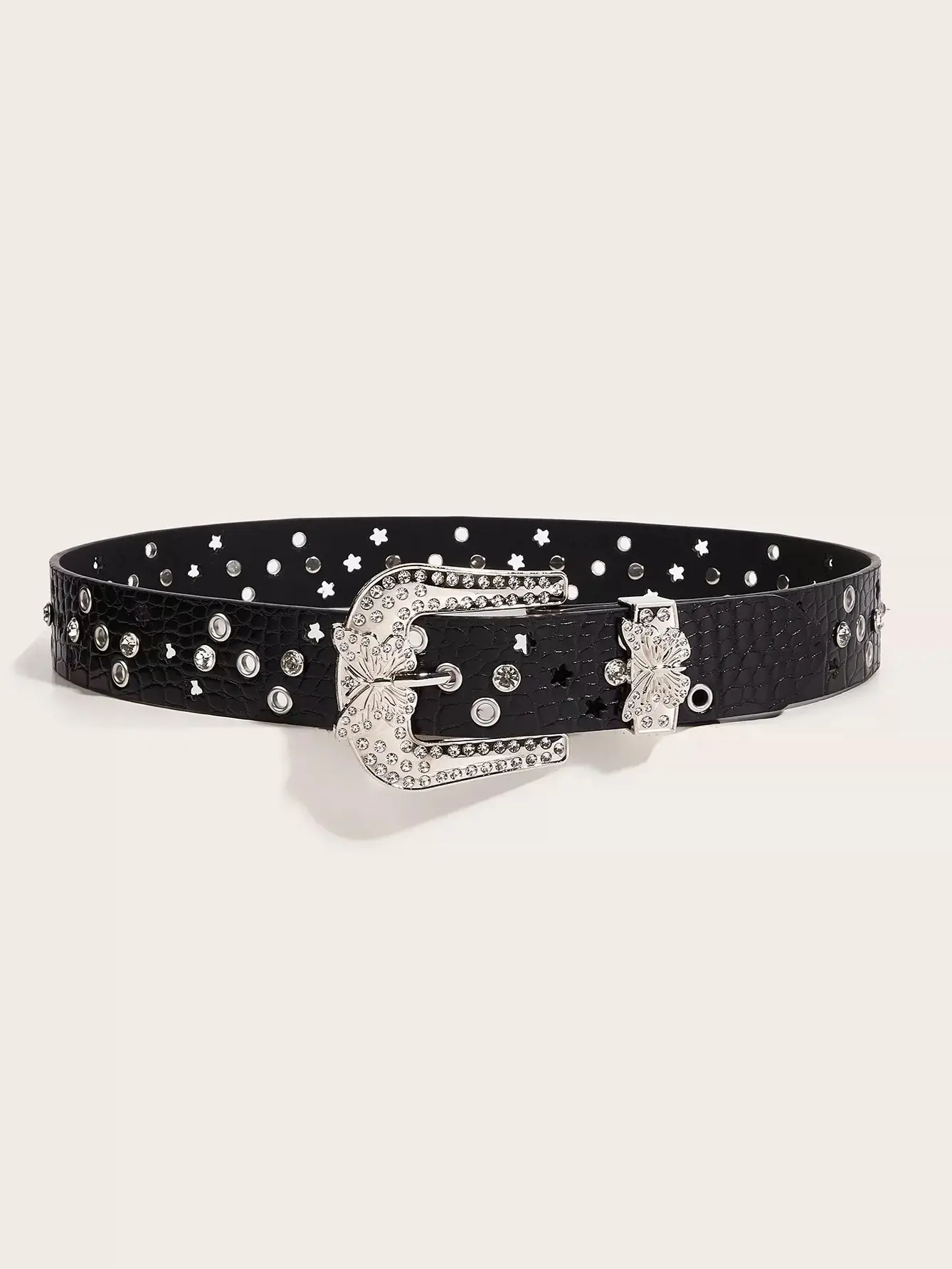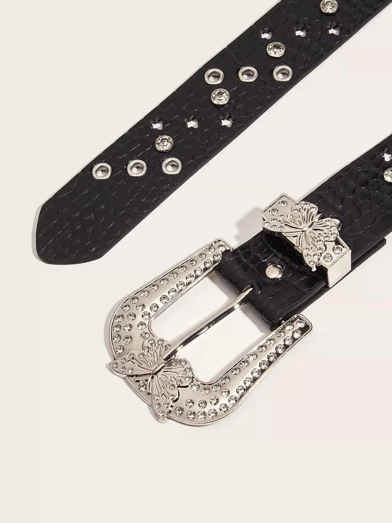 Y2K Retro Rhinestone Butterfly Belt for Women — Edgy & Chic Accessory for Jeans