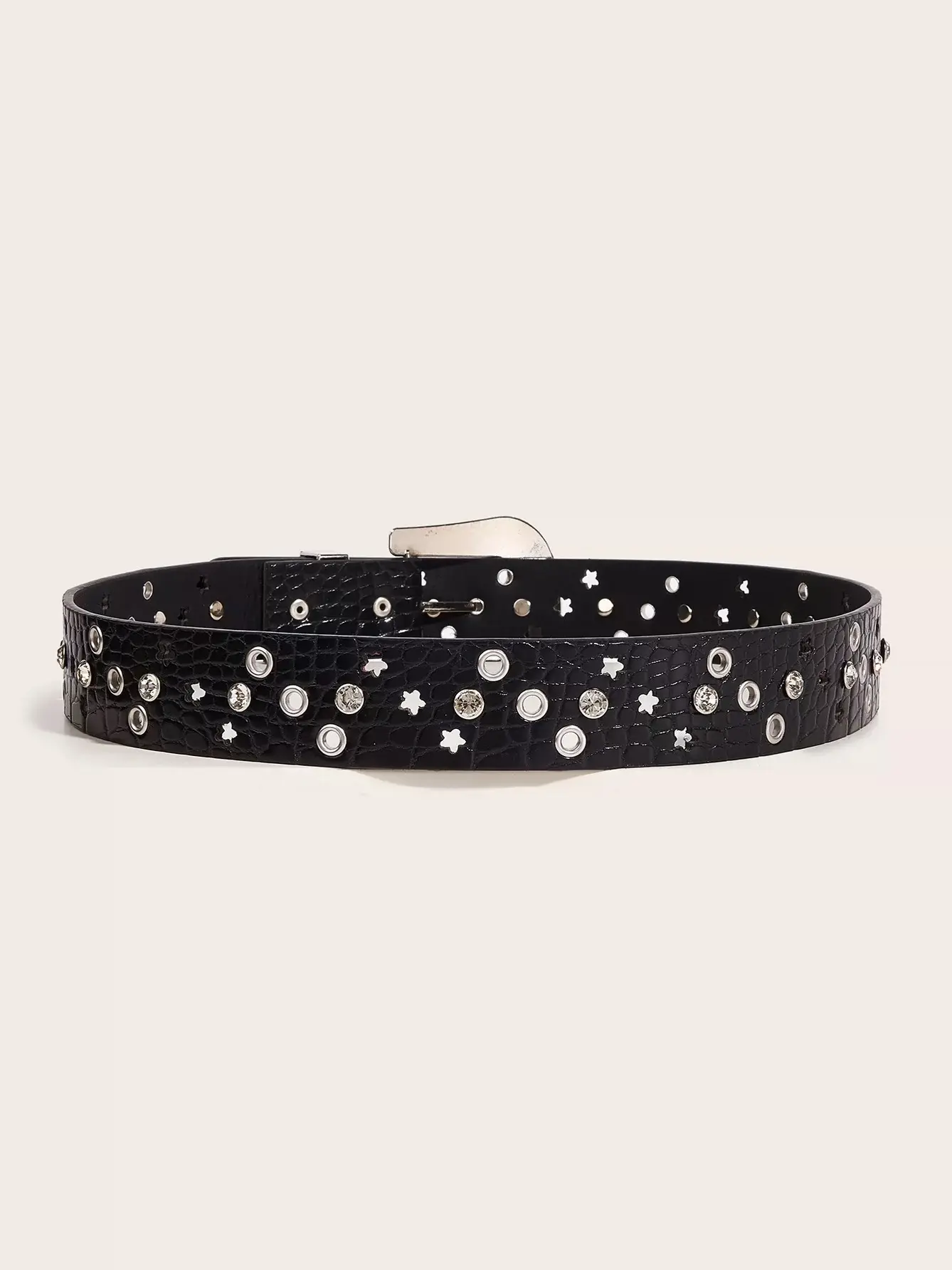 Y2K Studded Belt Unisex Punk Metal Grunge Accessory with Unique Buckle and Studs Design
