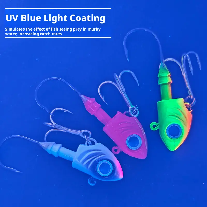 Features - Advantages DescriptionCounterweight lead head - Integrated structure, stable center of gravity, excellent long-distance casting performanceBright color combination - Highly reflective coating, noticeable underwater, suitable for various scenariosSharp hook tip - Made of high-carbon steel, it has strong penetration power and is not easily deformedNon-Slip Design - Double hook combination, completely covers the bite area, locking the fish more securely
