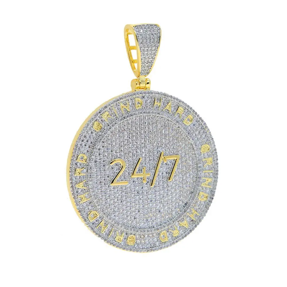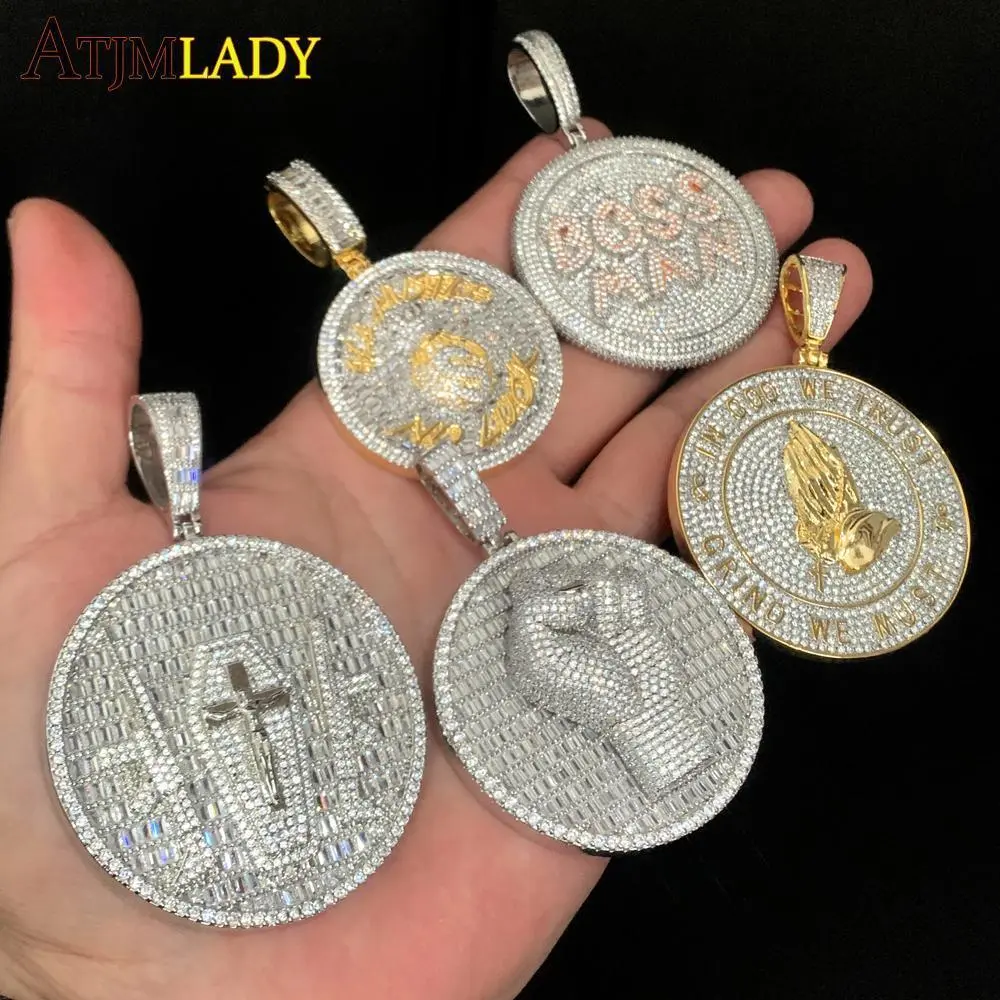 2025 New Iced Out Bling Round Letter Pendant Necklace Full Paved 5A CZ Cubic Zirconia Badge Charm Fashion Hip Hop Men Jewelry