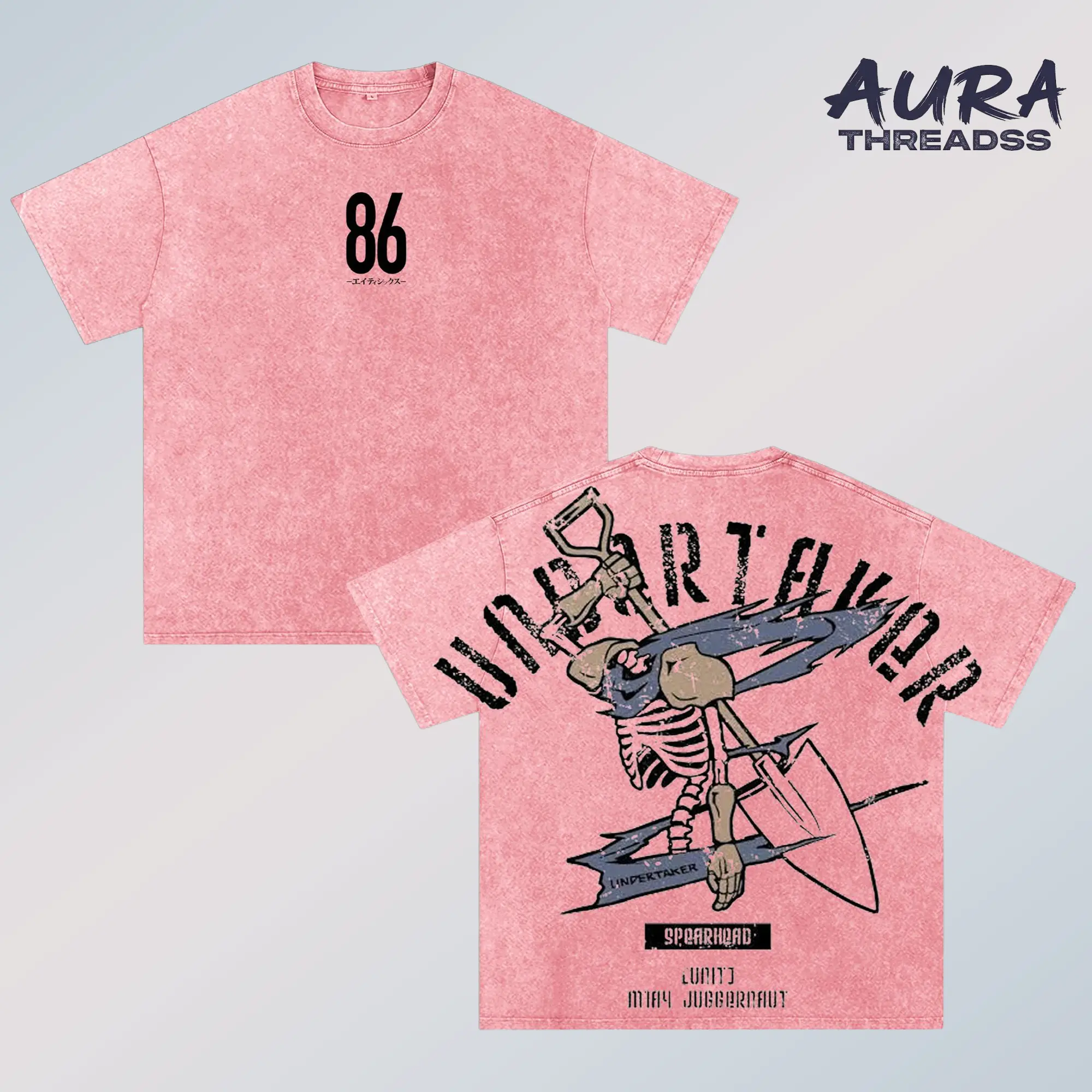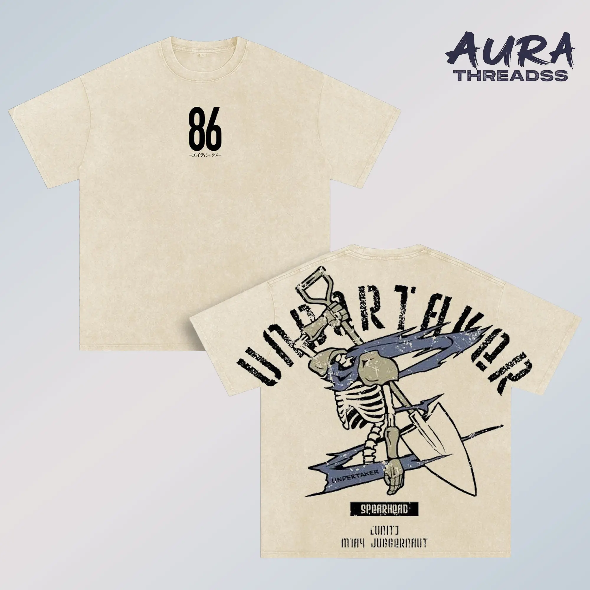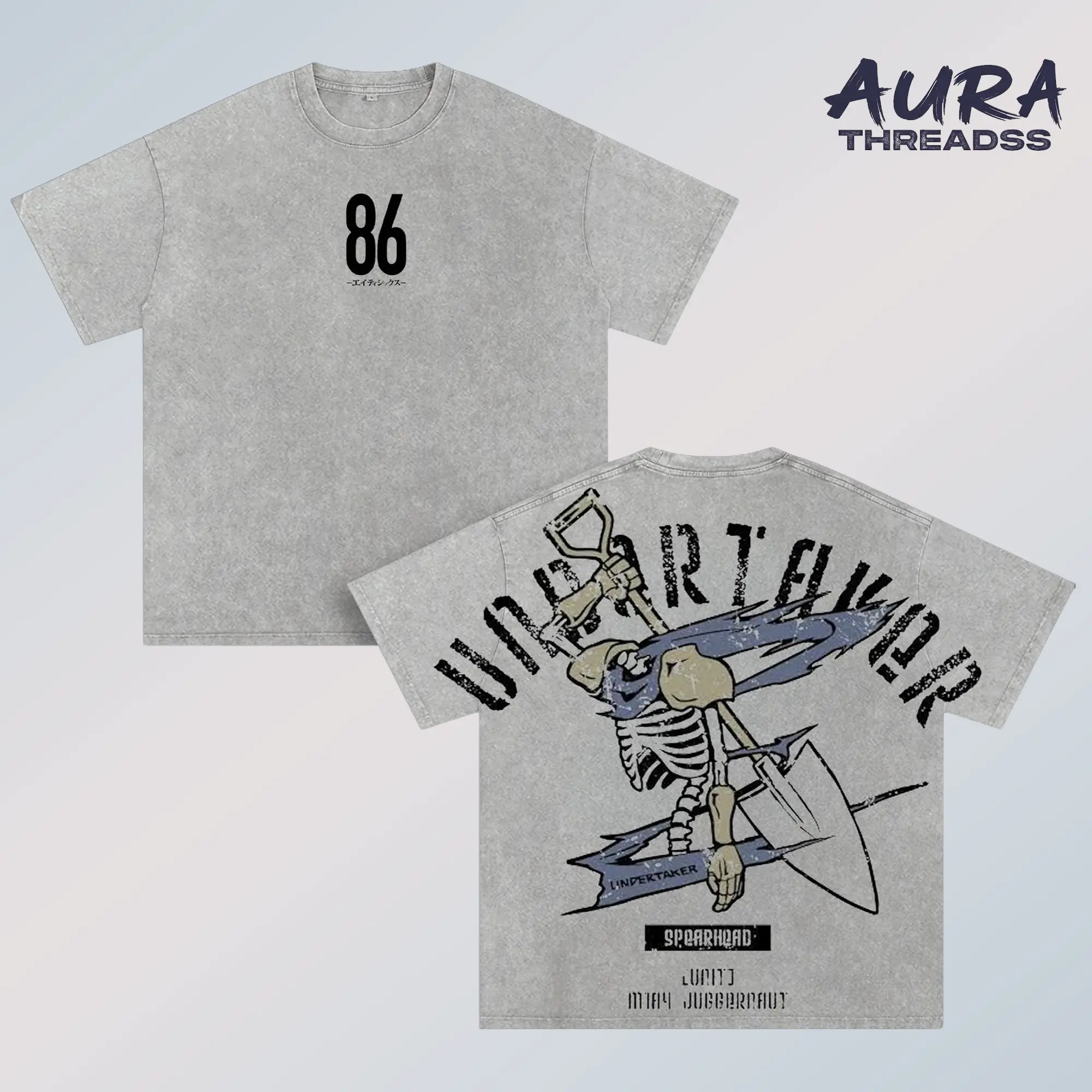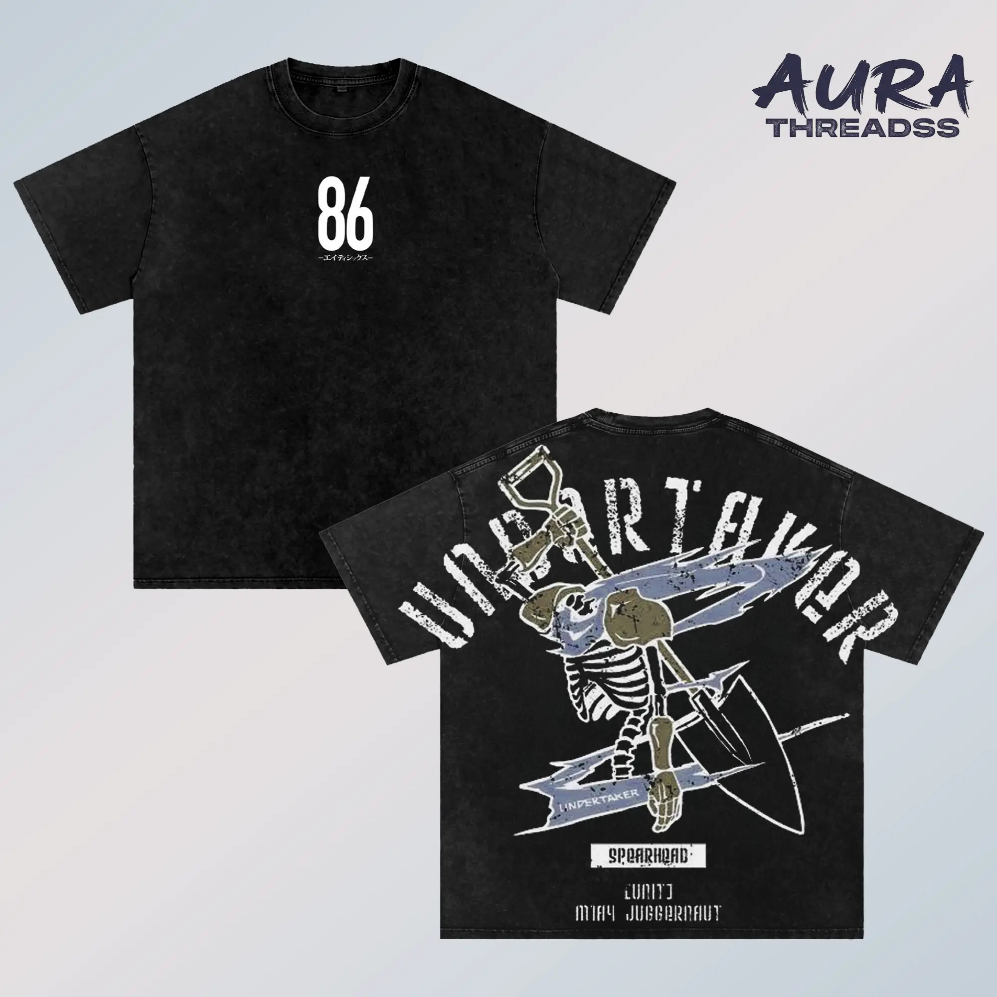 5. 86 Eighty Six Undertaker Anime Double Printed Vintage Washed Tee Unisex Oversize Anime Manga Washed Heavyweight Cotton T-shirt
