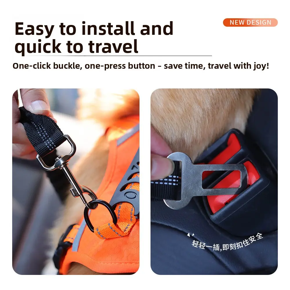Dog Car Safety Seatbelt, Retractable Bungee Dog Leash, Shock Absorbing Reflective Safety Leash with Steel Buckle, Adjustable Length 20.87-29.53in for Pet Travel, Heavy Duty Vehicle Restraint for Small Medium Large Dogs, Anti-Pull Comfort Walking Leash