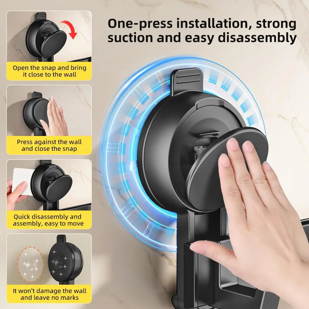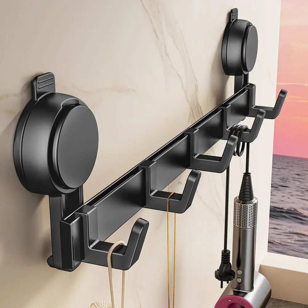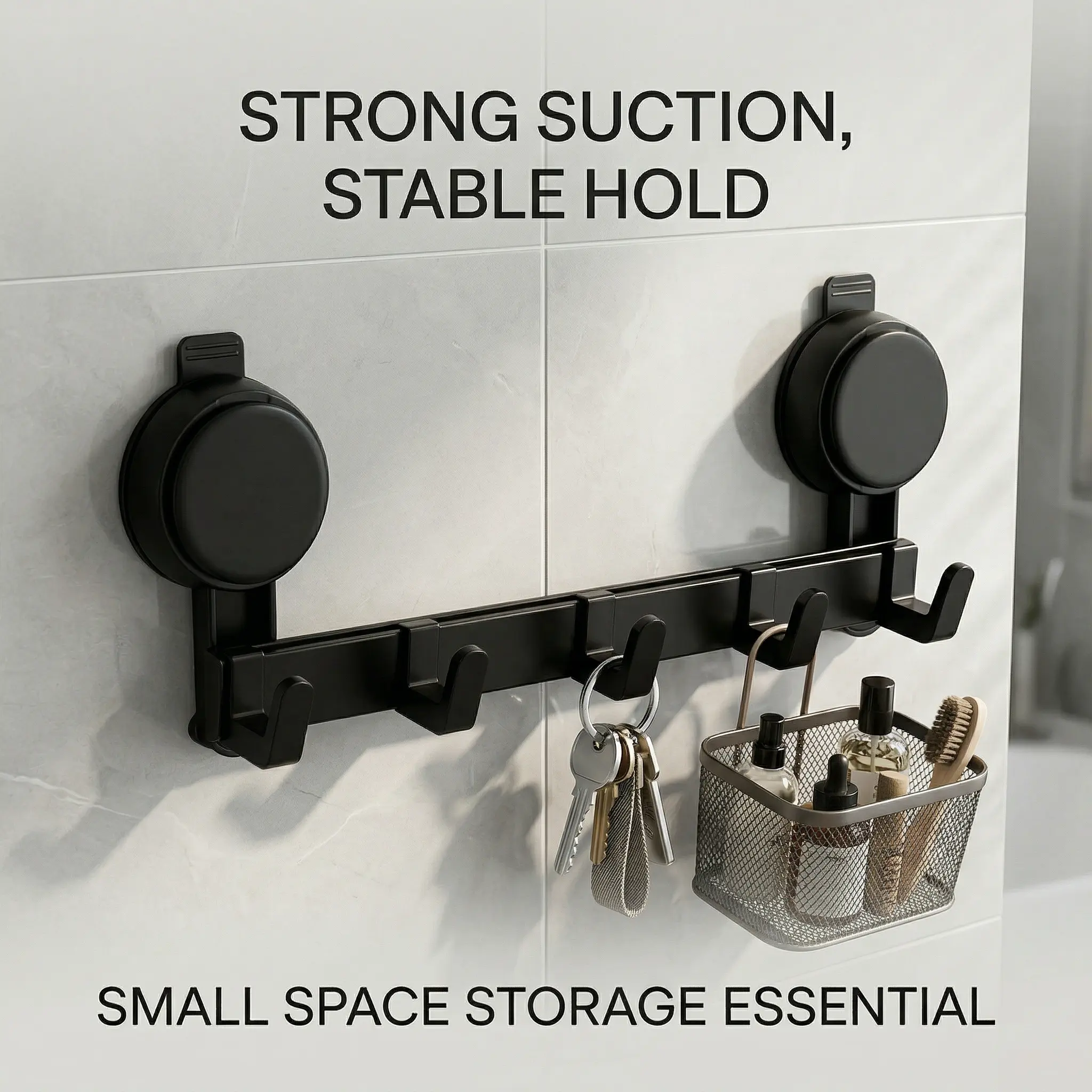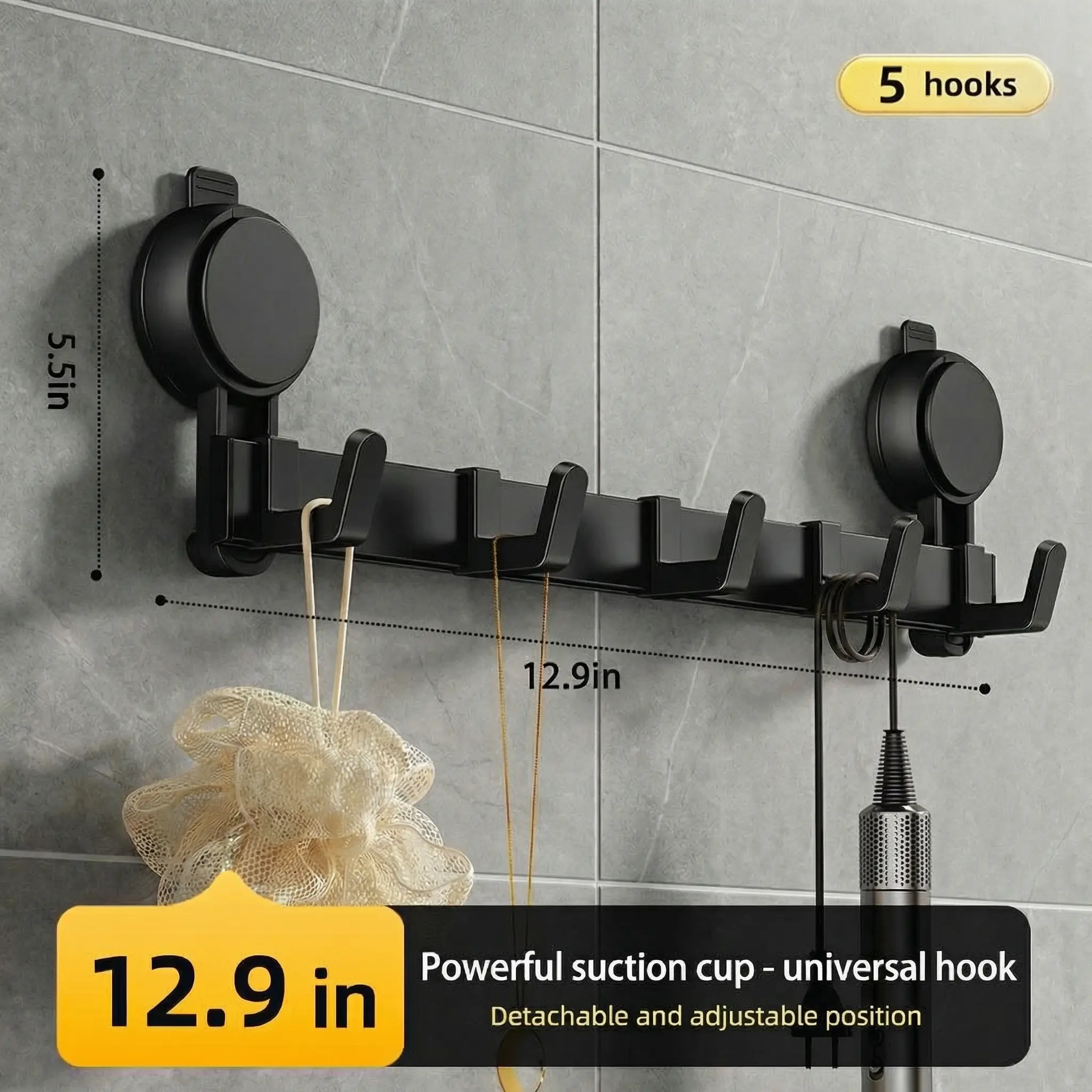 5 Hooks Suction Cup Hook Rack Heavy Duty No Drilling Bathroom Shower Door Black Rustproof Aluminum