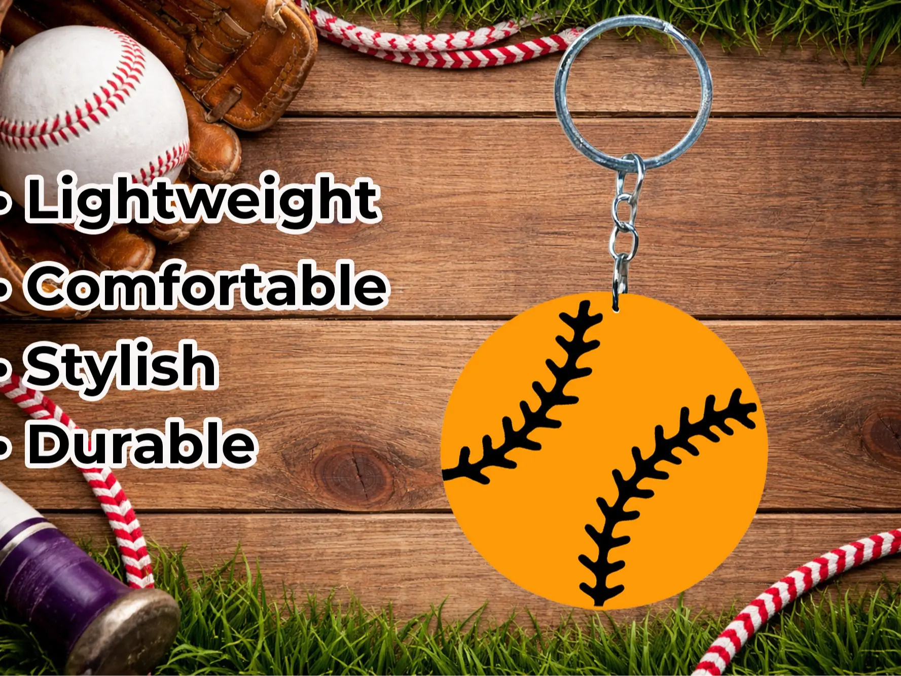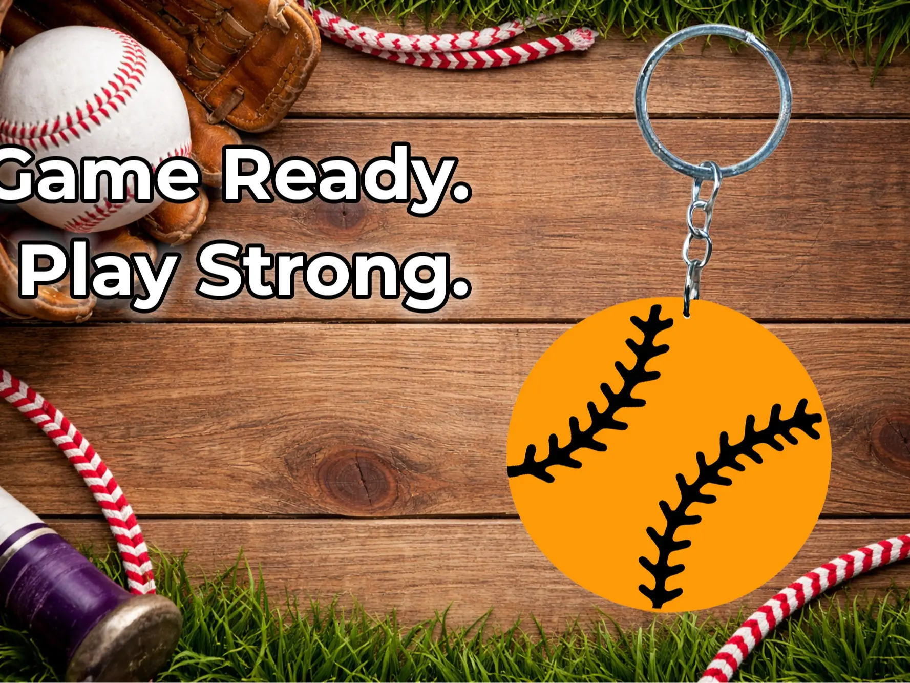 Add a sporty touch to your everyday carry with this softball keychain set.