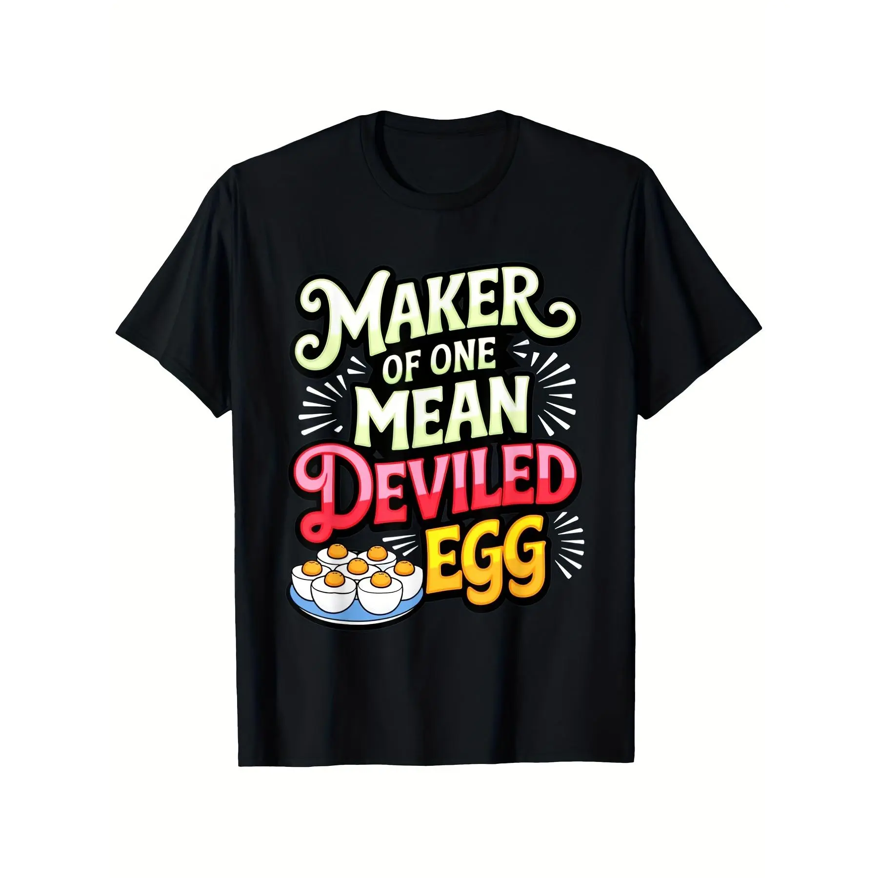 Deviled Egg Lovers T-Shirt - Funny "Maker of One Mean Deviled Egg" Slogan & Egg Carton Design, 100% Cotton Loose Fit Retro Vintage Tee for Men & Women, S-XXXL Sizes, Thanksgiving Party Gift for Egg Salad Fans
