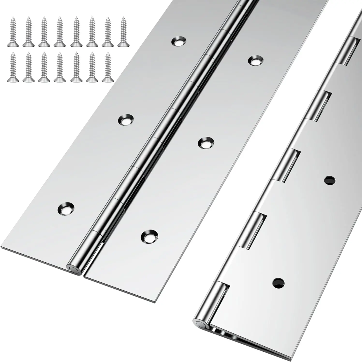 ·【Polished Surface & Smooth Operation】Our piano hinges are finely crafted with a smooth, burr-free surface, dust and rust proof. Each node is a stress-bearing point, provides uniform strength along the door or panel's length and creates a smooth and even pivot action, the effort to open and close the door is minimized.