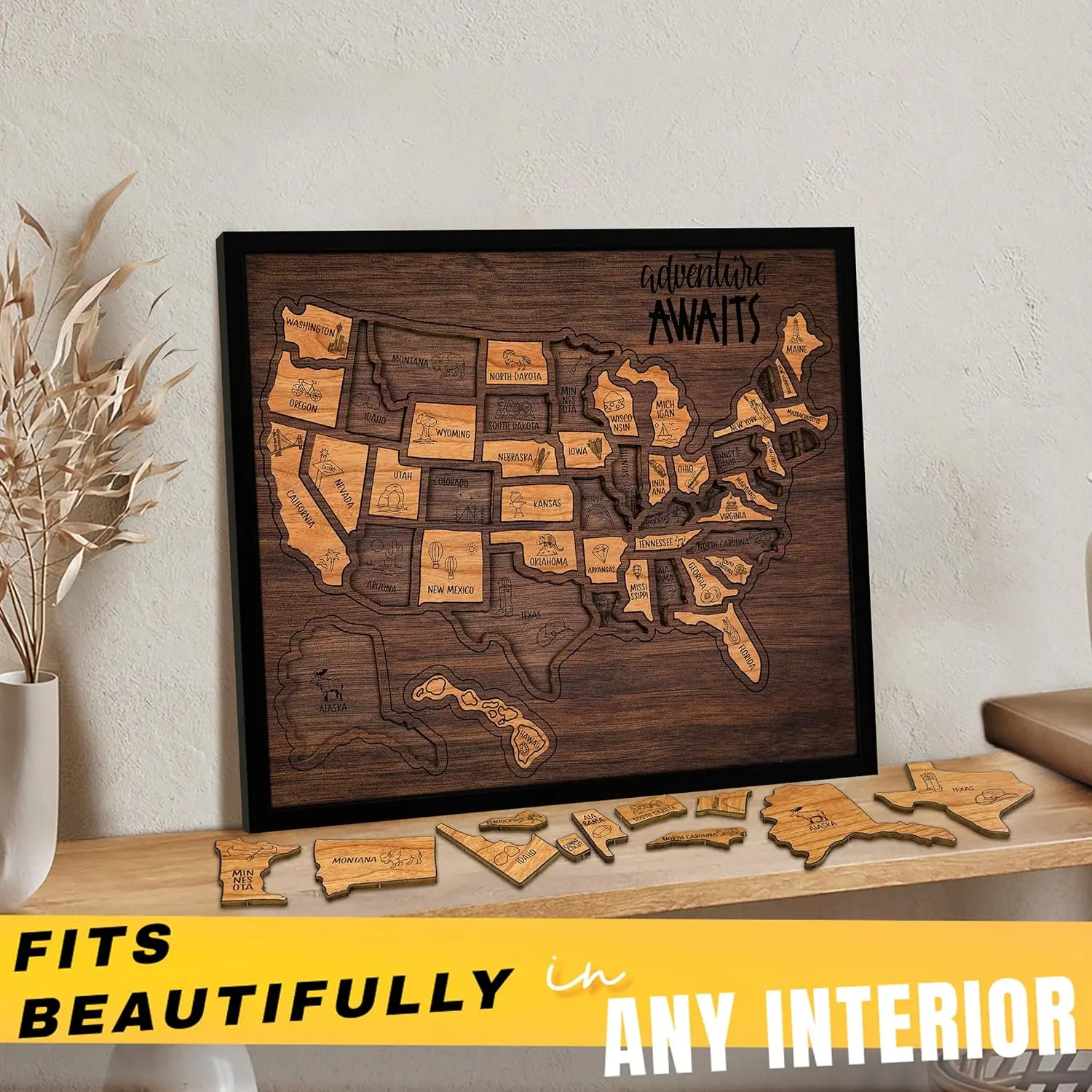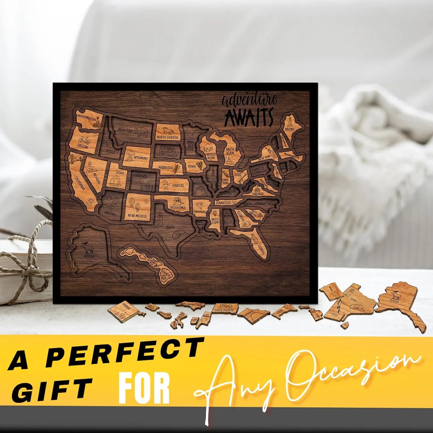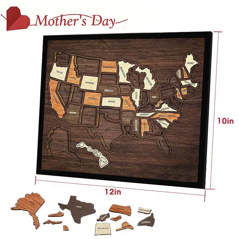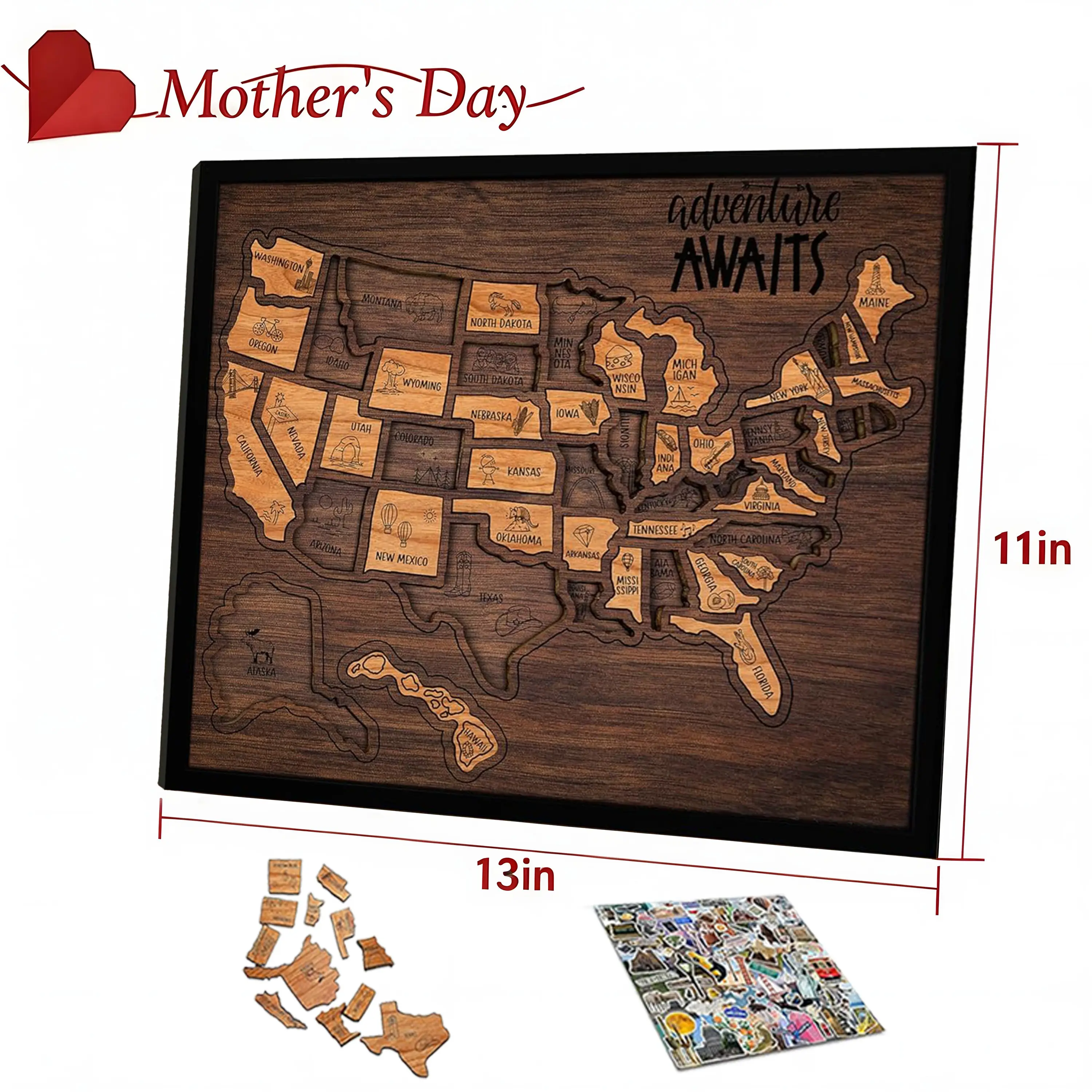 【Mother's Day】Wooden U.S.A, Map puzzle, travel map puzzle, anniversary gift, children's geography puzzle, or perfect holiday gift for couples and families, record your journey, memory making, home decor, unique traveler gift, best Mother's Day gift