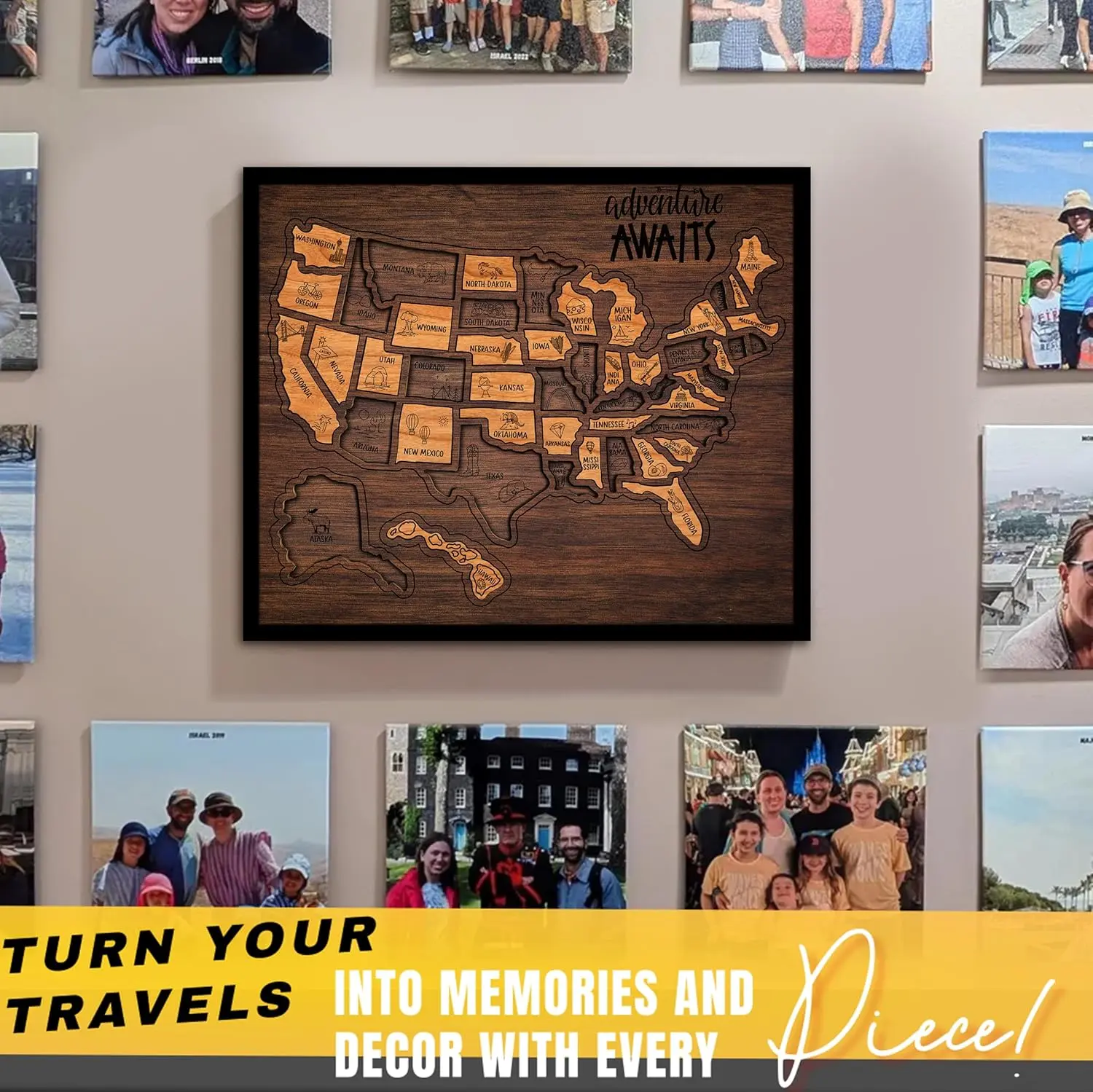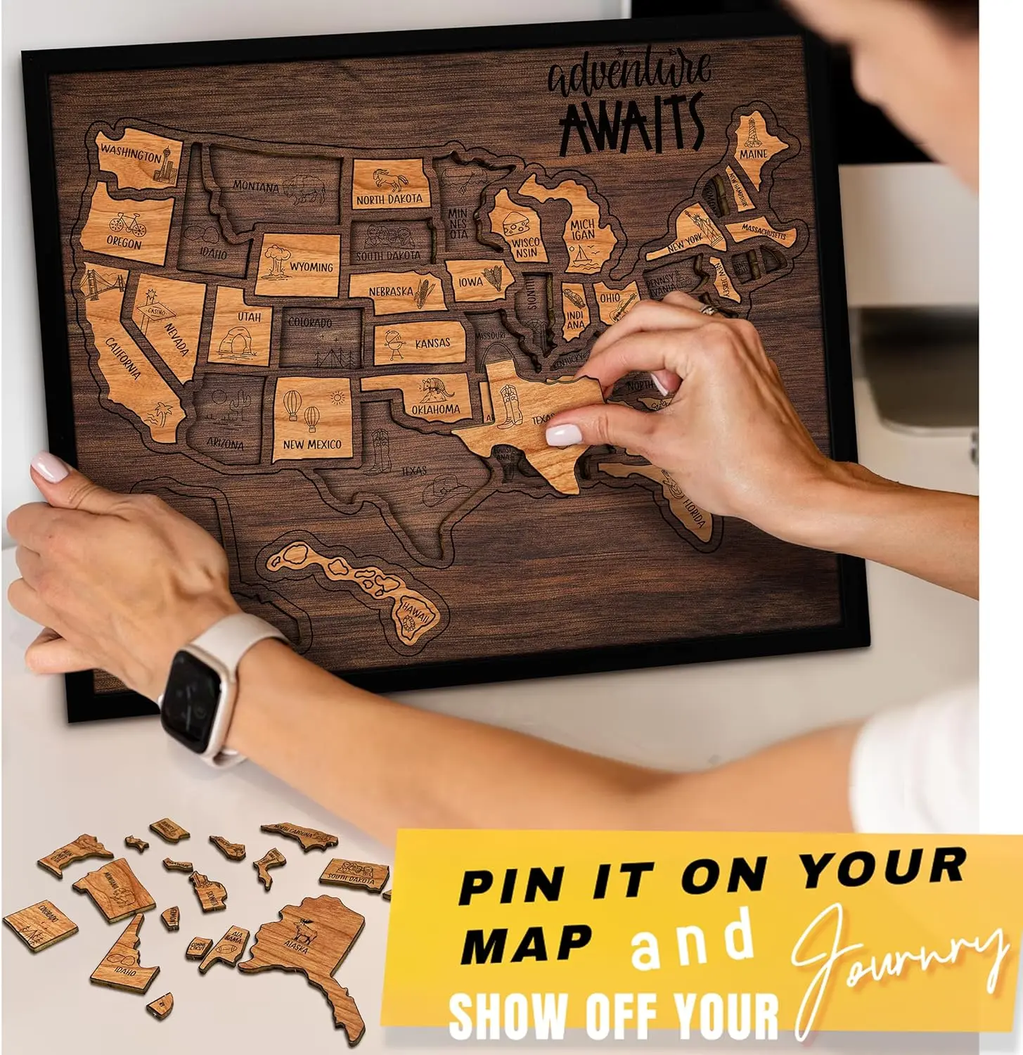 ·Pin your best journeys on our wooden usa travel map puzzle. The best gift for the wedding, anniversary or birthday. Perfect for adding a touch of wanderlust to an office, living room, It will forever be a keepsake of your adventures!