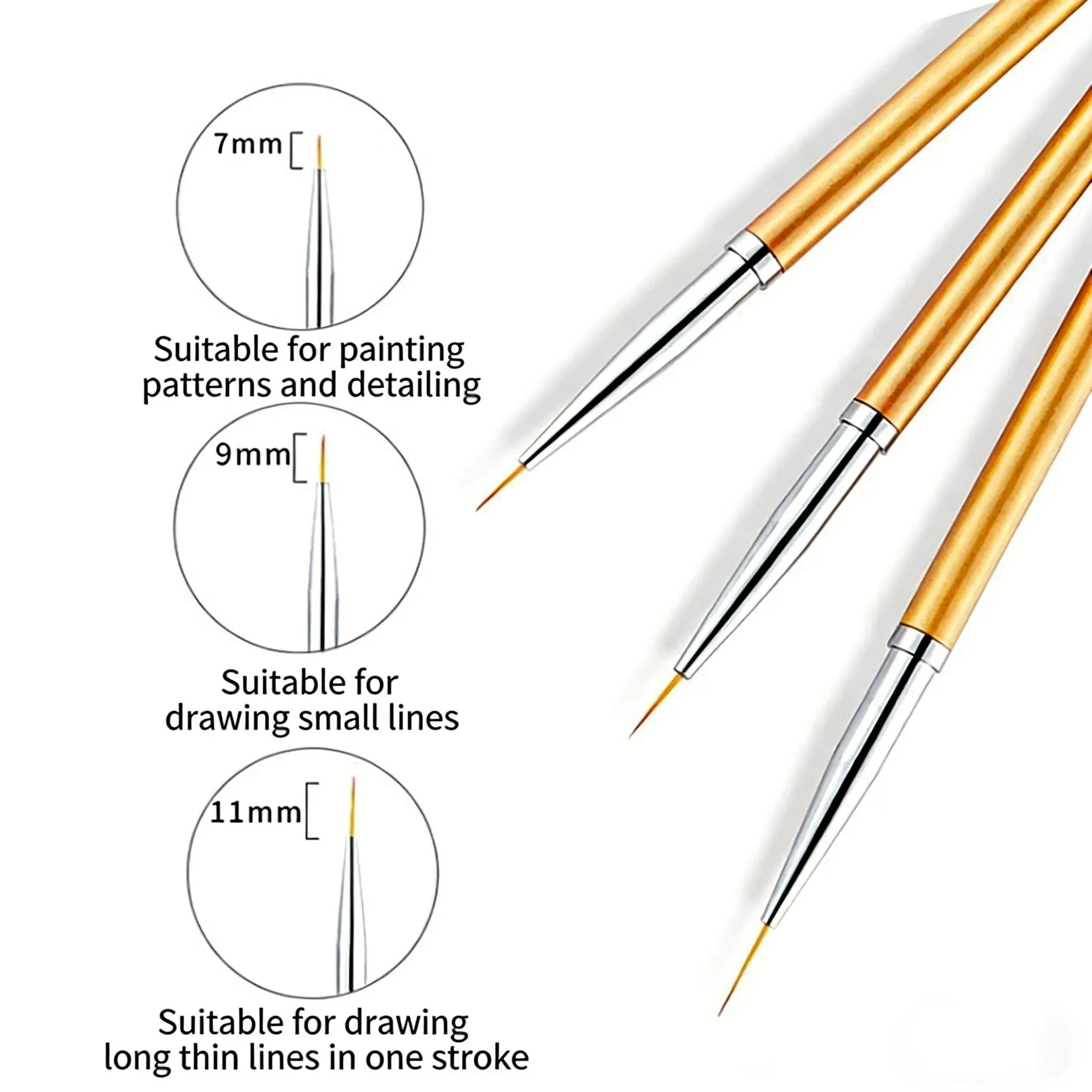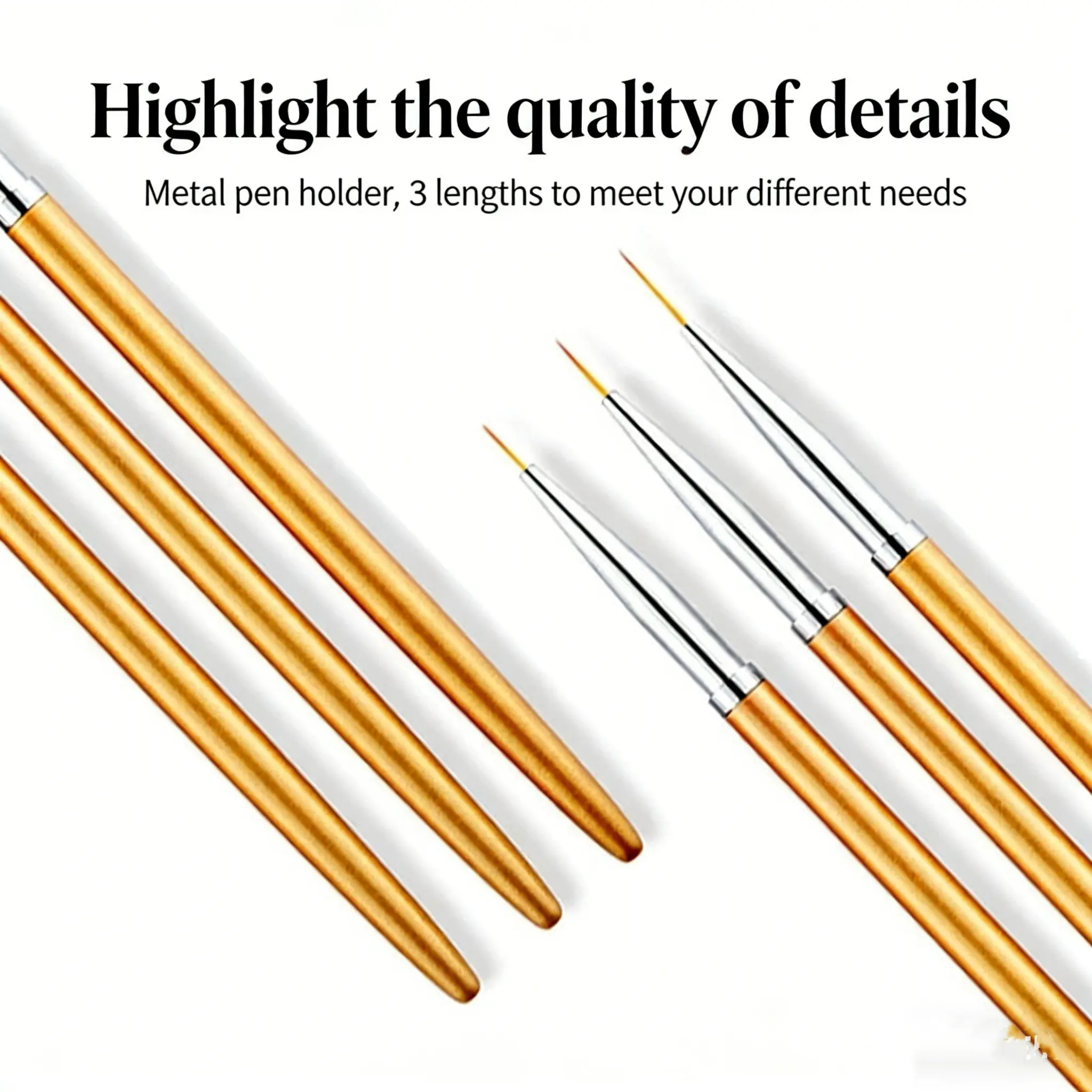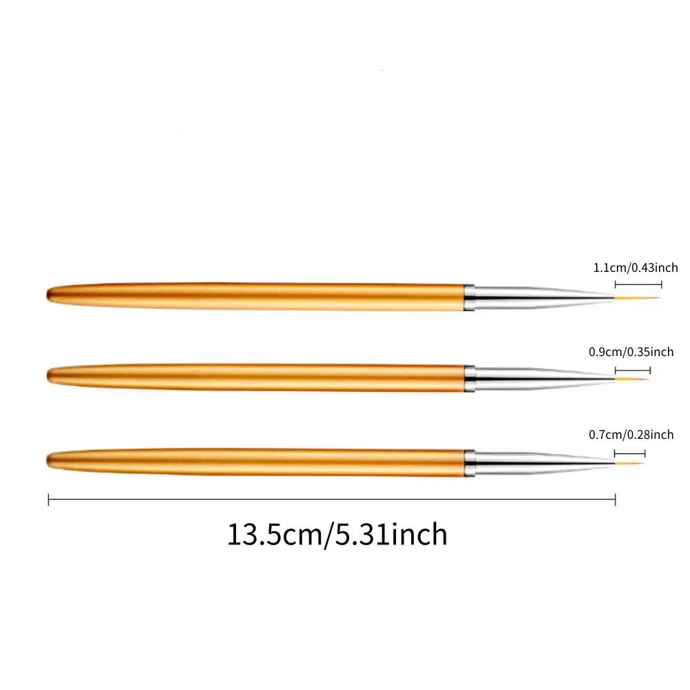 3Pcs Nail Art Liner Brushes, Metal Handle Fine Detail Brushes for Nail Painting, Lines Drawing, Professional Manicure Tools Set