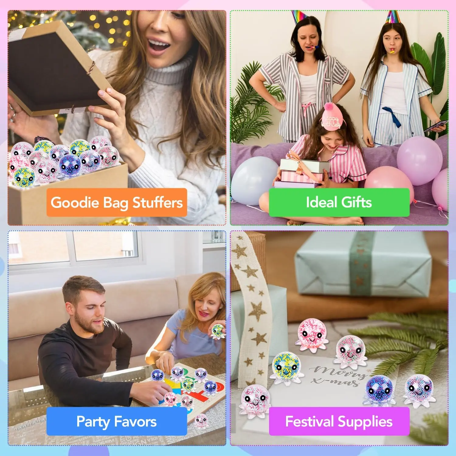• 12 Pack Fidget Stress Balls designed for adults. These cute octopus-shaped stress relief balls are perfect for unwinding. Each ball is a bulk squishy squeeze ball, offering a fun and engaging way to relieve stress. Ideal for birthday party favors, these balls add a playful touch to any celebration.