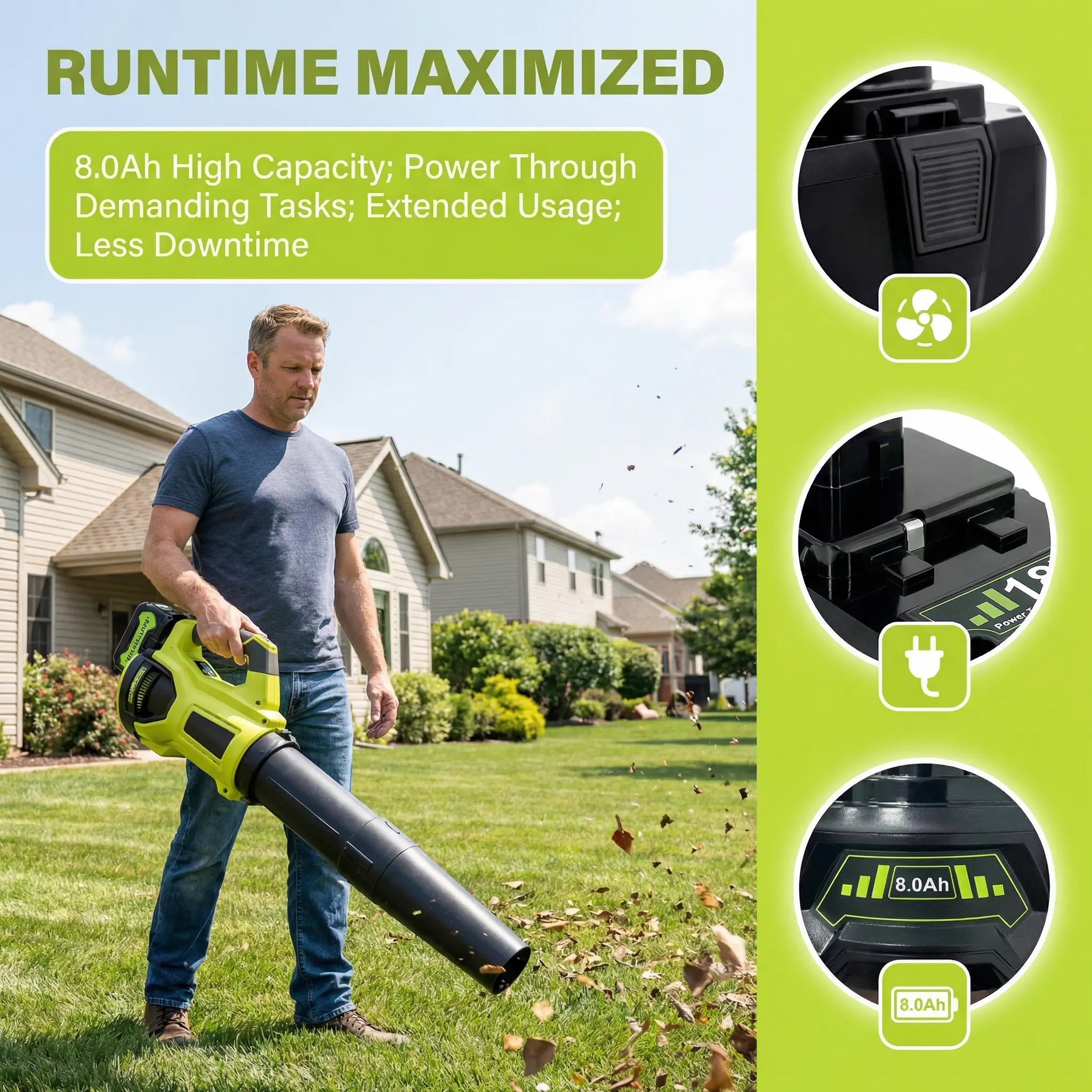 6-Pack 8000mAh Replacement for Ryobi 18V Batteries with Indicator Light for Li-Ion MAX P102 P103 P104 P105 P107 P109 P108 P122 Series Power Tools Precision Plunge Track Saw Guide Rail Powerful Electric Pressure Washer Foam Cannon screwdriver