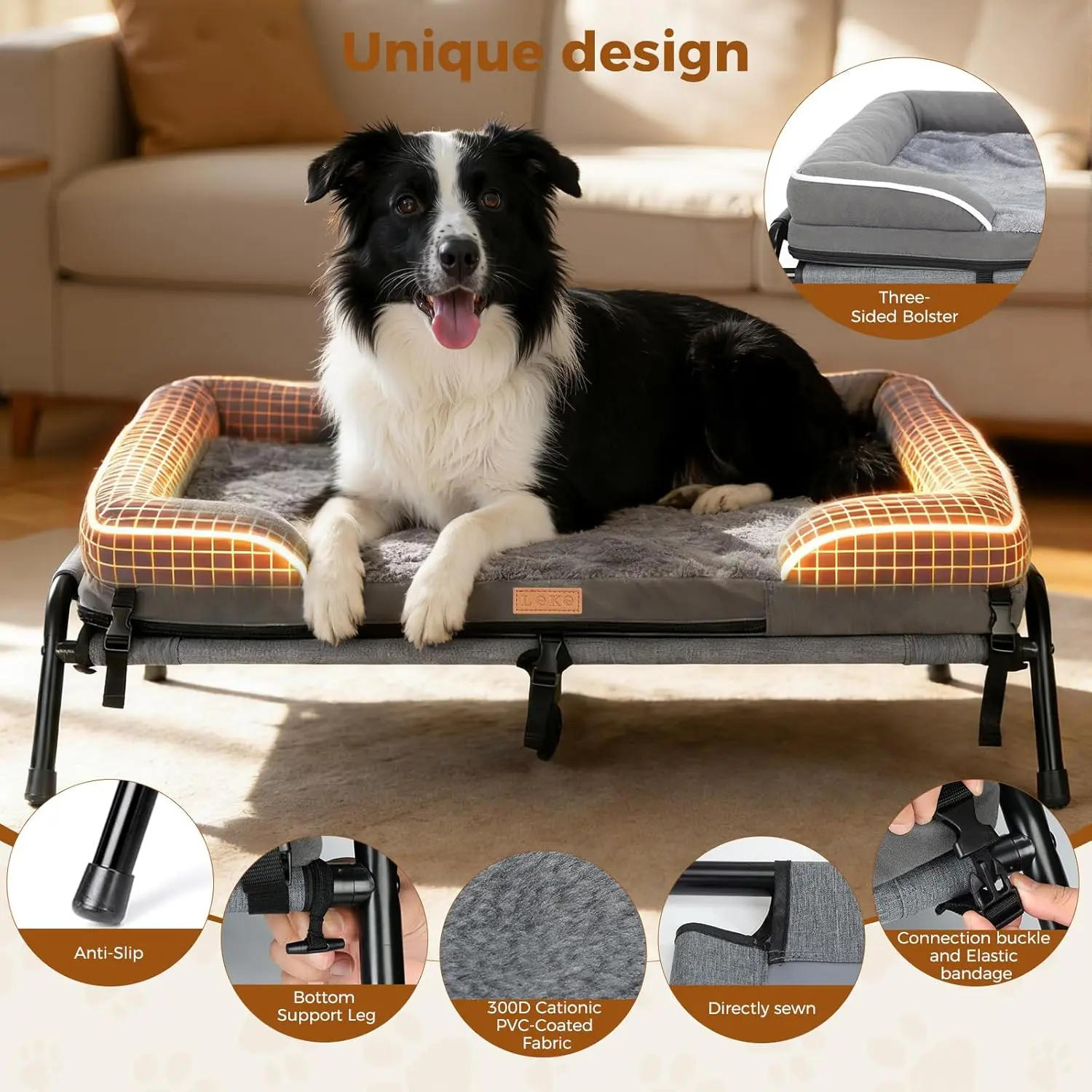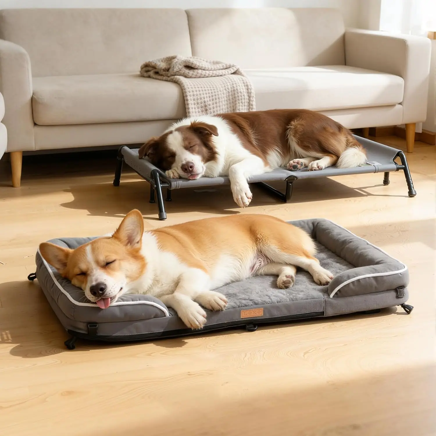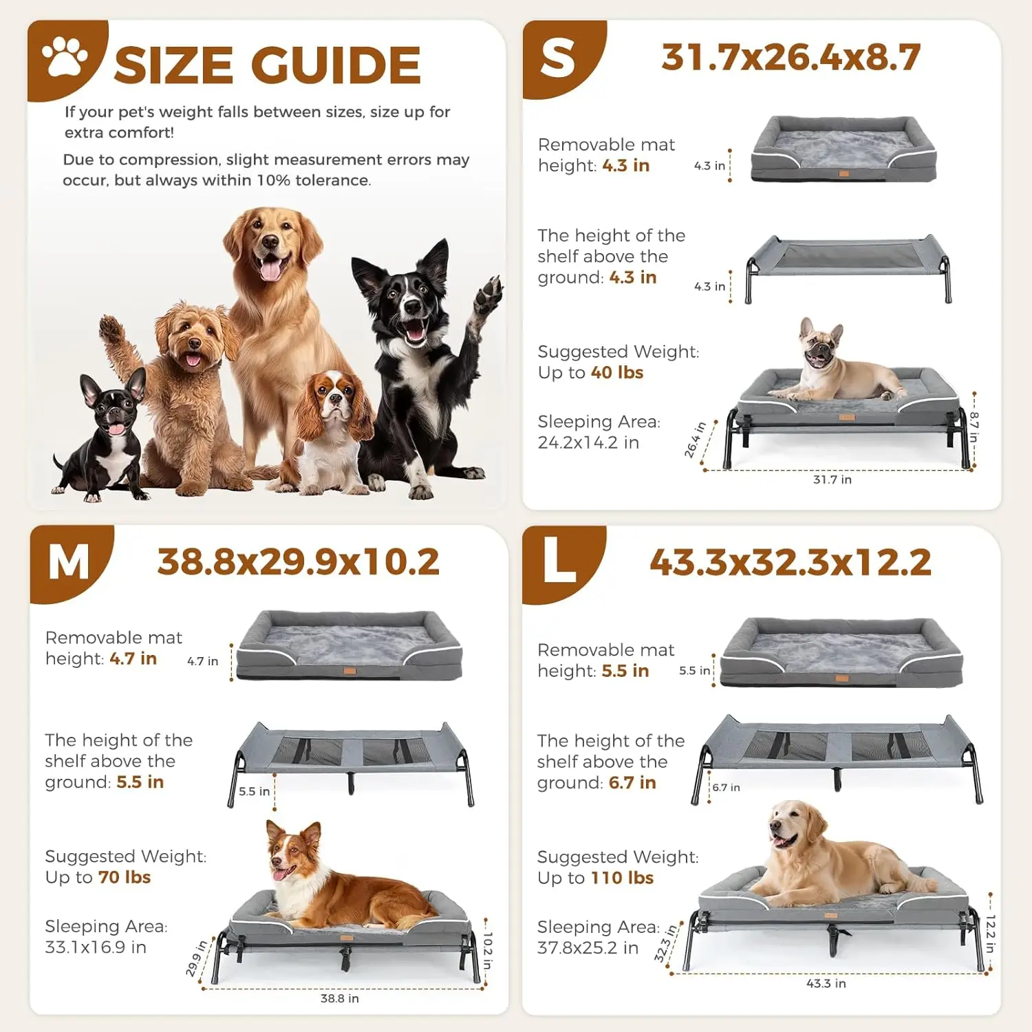 ·Sturdy Dog Cot Bed for Medium Dogs 50-70 lbs - This medium-sized dog cot bed fits perfectly for Cocker Spaniels, French Bulldogs, and other 50-70 lbs breeds—no more guessing "medium size" confusion. The reinforced metal frame with anti-slip feet prevents wobbling, matching the demand for stable dog cots for medium pets.