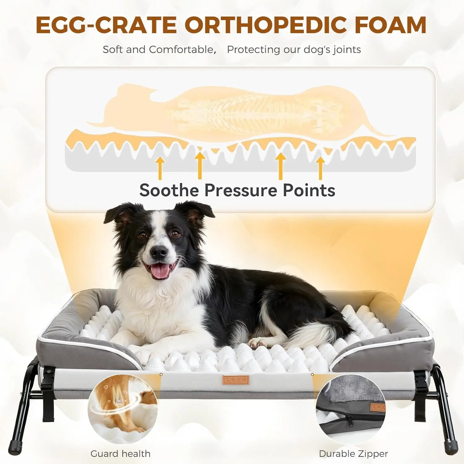 ·Orthopedic Egg-Crate Foam for Joint Support - The 4.7-inch thick egg-crate orthopedic foam evenly distributes your dog’s weight, reducing pressure on hips and joints—ideal for senior dogs or pups with joint issues. The foam is rated 6.8 on the hardness scale for optimal comfort and support.