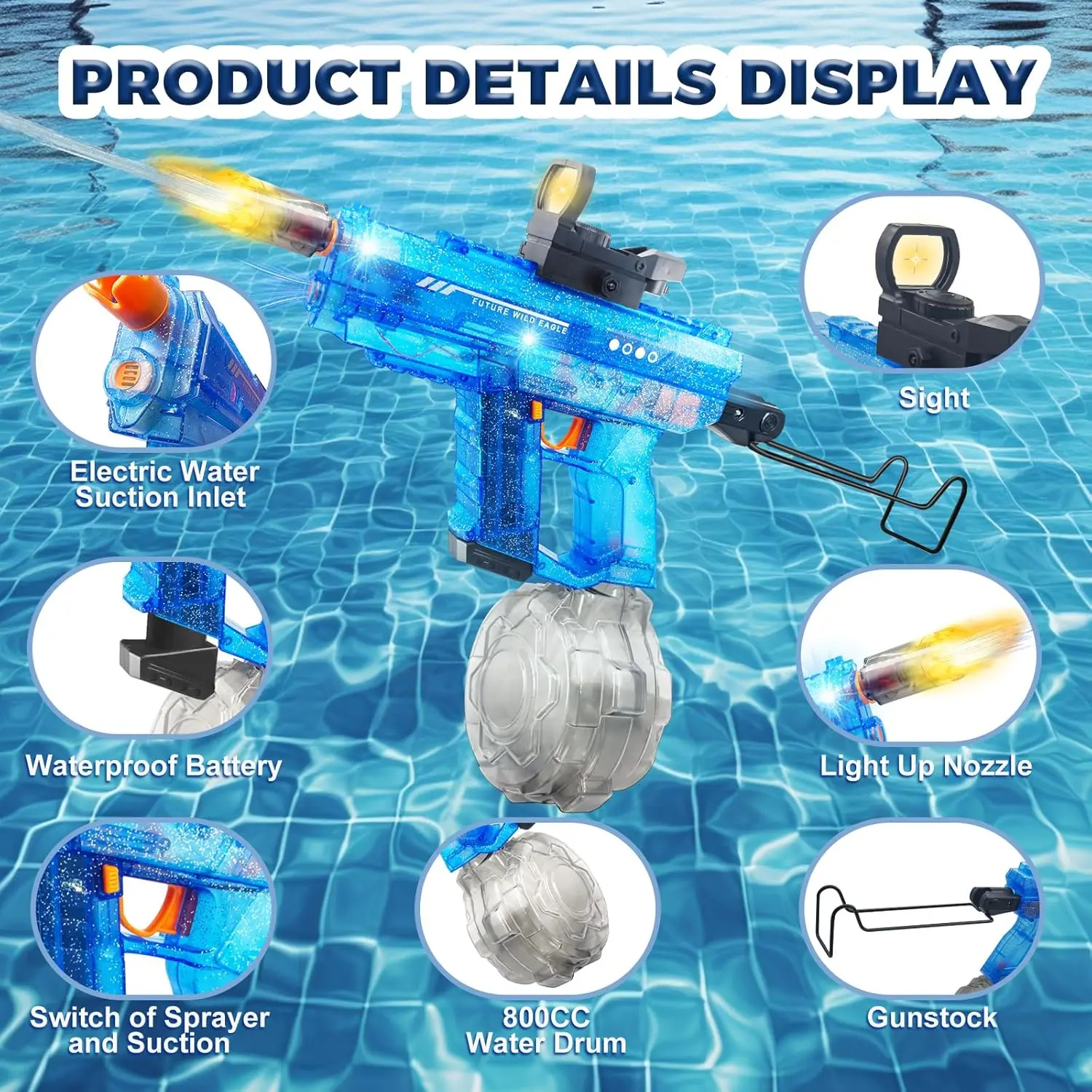 Jackal pdw Electric Water Blaster Toy for summer, With Non-Removeable Orange Muzzle and LED Muzzle, 800ML Large Water Tank, 32 Feet Long Shooting Range Pool Party Toy Gift, lead effect, Dealsforyoudays