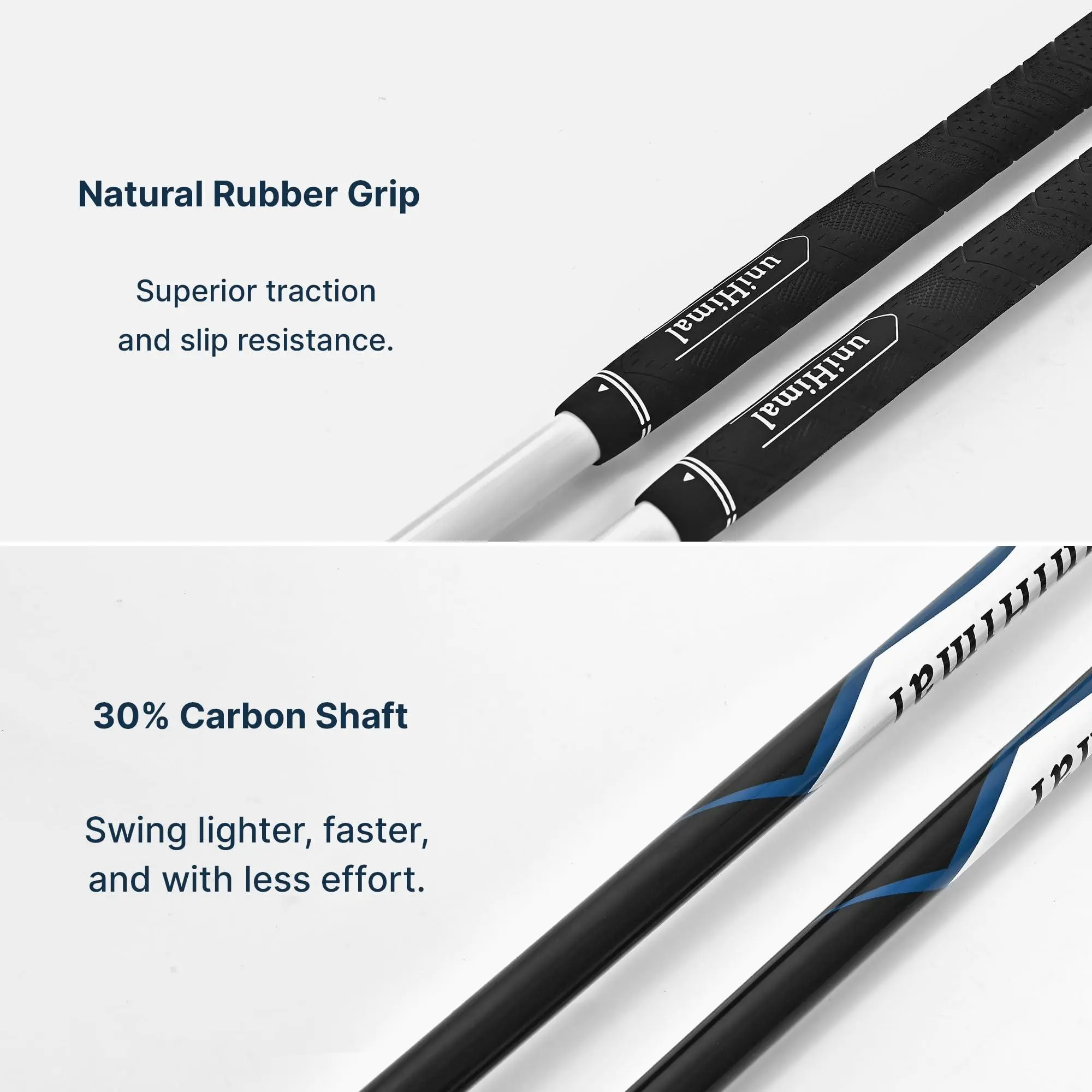 【LIGHTWEIGHT & EFFORTLESS SWING】Woods and hybrids are crafted with 30% carbon material, reducing overall weight for faster swing speeds. Makes every swing smoother, less tiring, and more efficient on the course