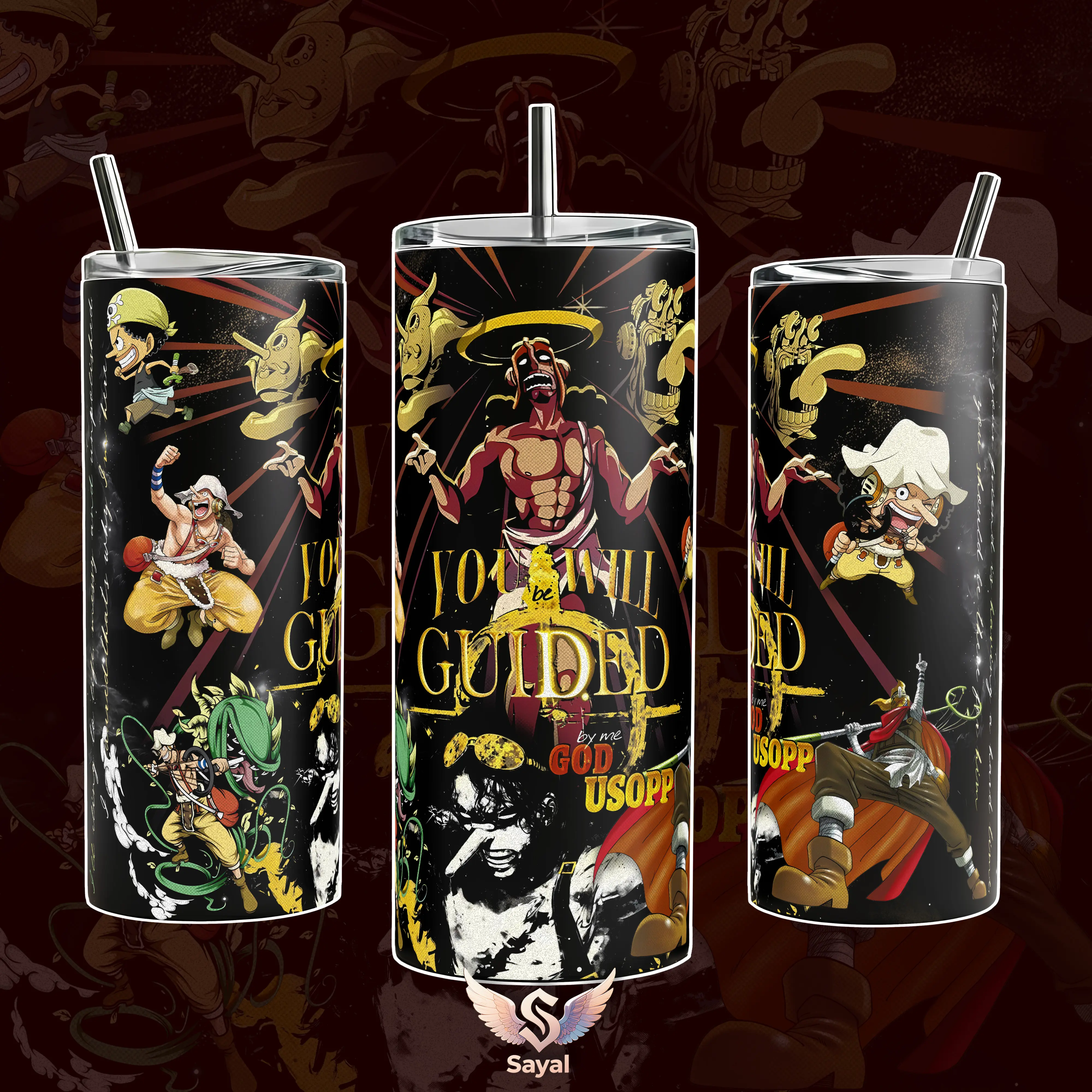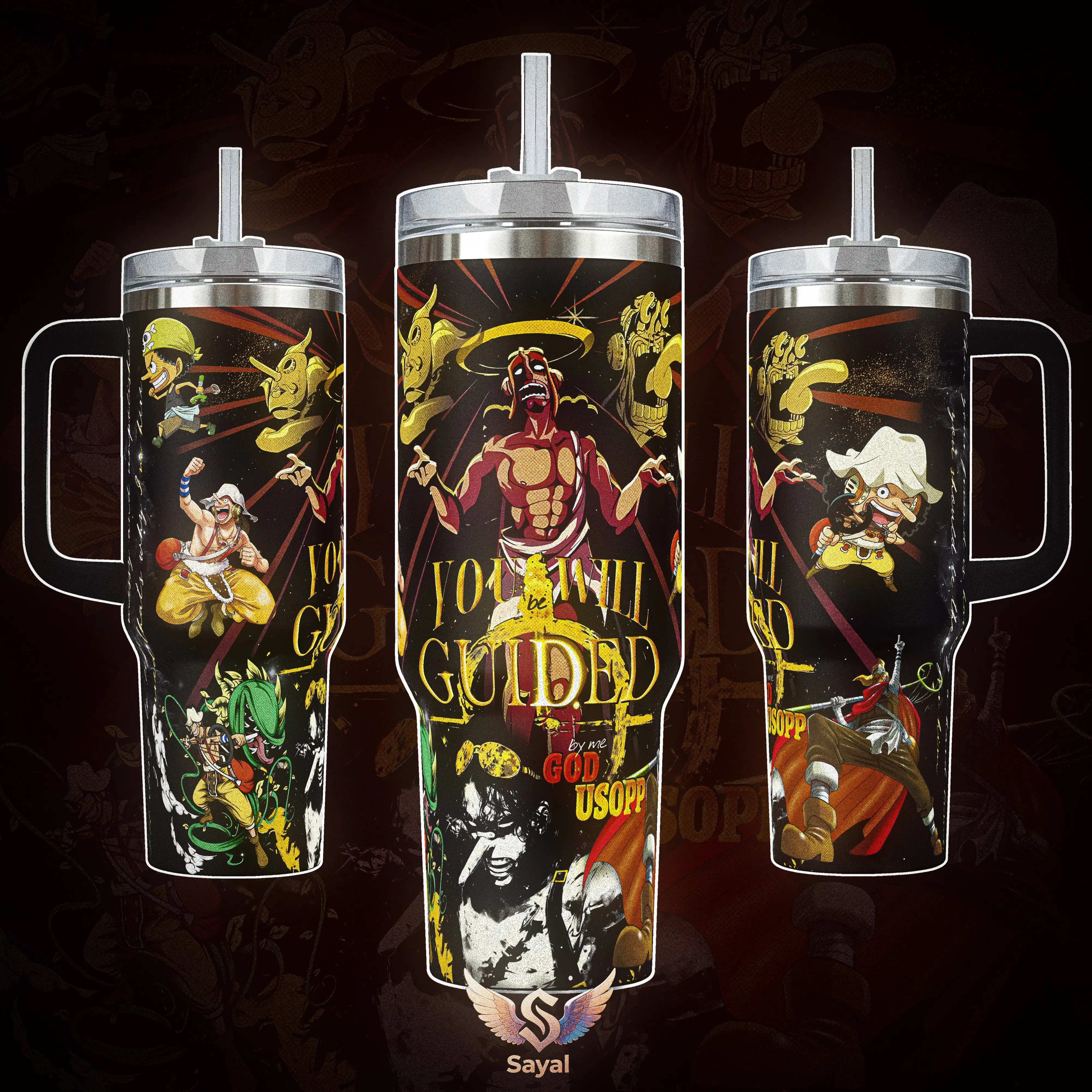 God Usopp Sogeking You Will Be Guided 40oz Tumbler Design Vacuum Insulated Stainless Steel Cup with Comfort Handle & Leak-Proof Straw, Hot Cold Beverage Container for Otaku & Weeb Birthday Gift for OneP Fans